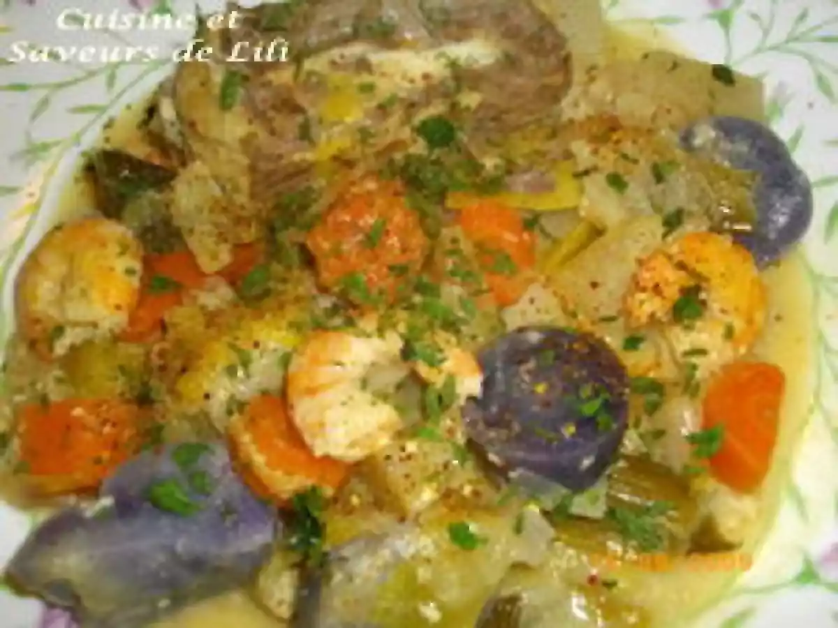 Blanquette de saumonette Platfacile55 min Envoyer cette recette à un ami Imprimer cette page Poser une question à l'auteur Publier votre photo de cette recette Ingrédients 6 Pour la blanquette: 1 belle saumonette 12 crevettes roses 1 échalote 1 poireau 4 navets 4 carottes 4 pommes de terre Vitelotte 1 cuillère à soupe d'huile d'olive Pour la sauce: 1 petit verre de vin blanc sec 1 cuillère à soupe de farine 20cl de fumet de poisson sel 1 cuillère à café de Piment d'Espelette le jus de 1 citron 1 jaune d'oeuf 30cl de crème liquide brins de persil Piment d'Espelette