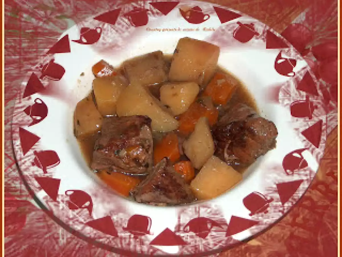 Boeuf à la bière - mijoteuse Platfacile8 h 10 m451 Kcal Envoyer cette recette à un ami Imprimer cette page Poser une question à l'auteur Publier votre photo de cette recette Ingrédients 4 600 g de boeuf à bourguignon maigre en morceaux 4 pommes de terre moyennes 2 oignons 3 carottes 50 cl de bière 20 cl d'eau 1 cube bouillon de boeuf 2 cuillères à soupe de persil (séché) 1 belle pincée de thym (sec) 1 peu d'huile d'olive sel poivre du moulin Coût estimé: 12.51Euros€ (3.13€/part)