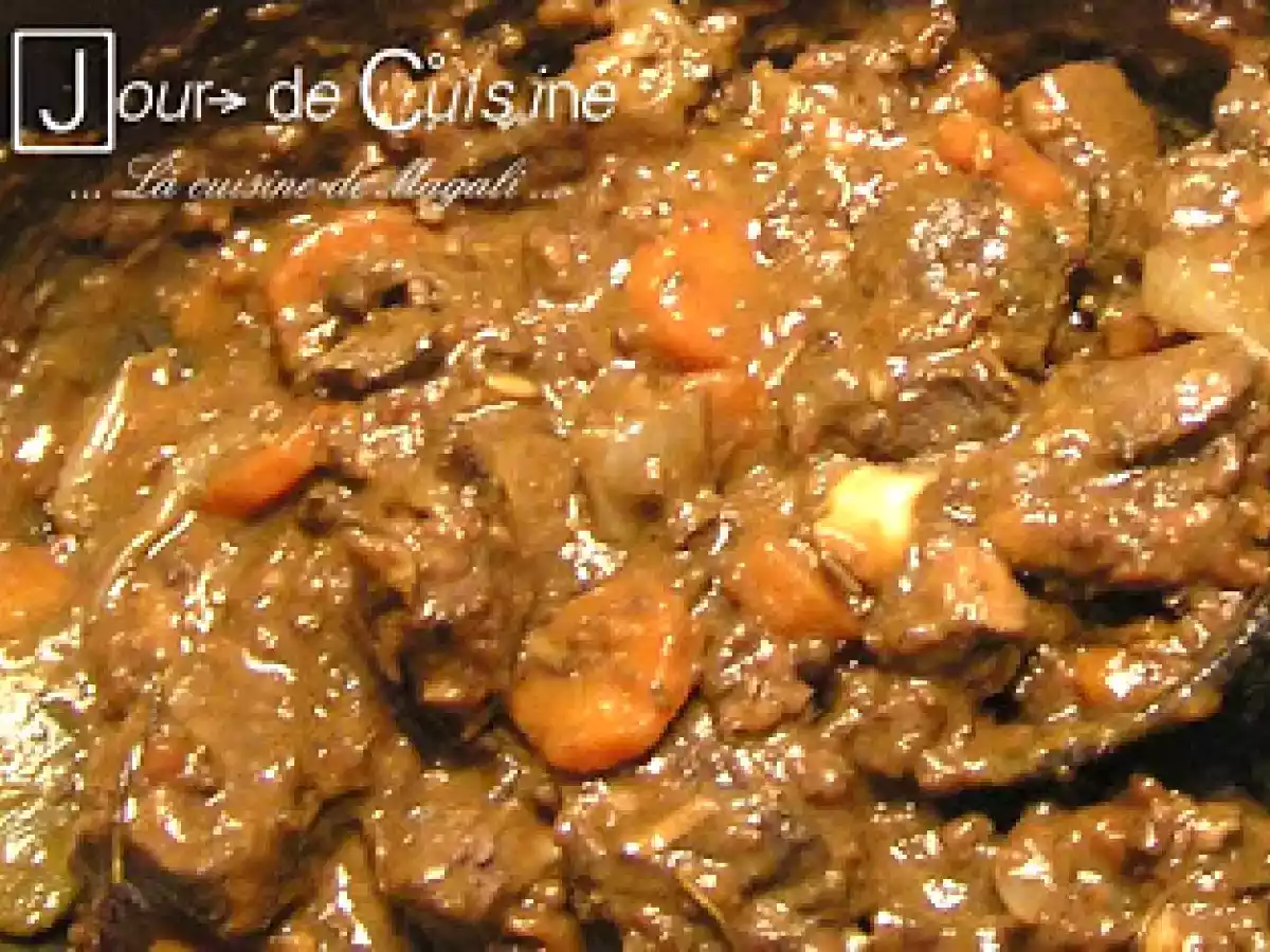 Boeuf à la coriandre votez maintenant Platfacile3 h 20 m Envoyer cette recette à un ami Imprimer cette page Poser une question à l'auteur Publier votre photo de cette recette Ingrédients 6 Pour la marinade : 1,2 kg de boeuf pour bourguignon 1 pied de porc (facultatif) 6 à 7 petits oignons blancs 3 gousses d'ail 1 petite poignée de grains de coriandre 1 pincée de thym 1 pincée de romarin 1 pincée de sarriette 1 pincée de quatre épices 3 clous de girofle 3 feuilles de laurier 75 cl de vin rouge Sel poivre 4 cuillères à soupe d'huile d'olive 10 g de beurre 200 g de lardons fumés 2 carottes 2 tomates ou une boite ¼ de tomates 1 petit poignée de persil 1 bouillon de boeuf en cube 50 g de farine Olives vertes dénoyautées