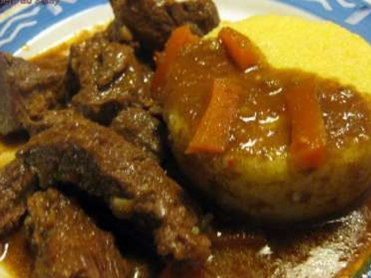 Boeuf au satay et sa polenta PrécédentSuivant Platmoyen2 h 30 m Envoyer cette recette à un ami Imprimer cette page Poser une question à l'auteur Publier votre photo de cette recette Ingrédients 5 Boeuf au Satay : 1,5 kg de bourguignon 250 g de carottes 1 bel oignon passé au mixeur 3 belle tomates fraîches passées aussi au mixeur 3 gousses d'ail 3 càs de Satay 1,5 càc de paprika 0,5 L de bouillon de boeuf sel Huile Polenta au coeur de mozzarella : (Pour environ 6 ramequins) 250 g de polenta sel et poivre mozzarella