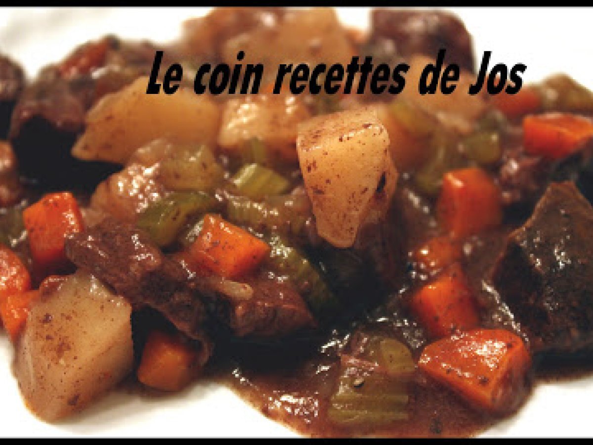 Bœuf aux légumes Platmoyen8 h 20 m Envoyer cette recette à un ami Imprimer cette page Poser une question à l'auteur Publier votre photo de cette recette Ingrédients 4 2 livres de cube de boeuf à ragoût 1/2 tasse de vin rouge 1 et 1/2 tasse de bouillon de boeuf 3 cuillères à table de sauce en poudre, soit brune ou rosbeef 4-5 pommes de terre moyenne couper en cube 1/2 poivron couper en petit cube 1 oignon moyen couper en petit 3 branches de céleri couper en petit tronçon 3 carottes couper en petit dés 1 petite canne de pois sel, poivre au goût .