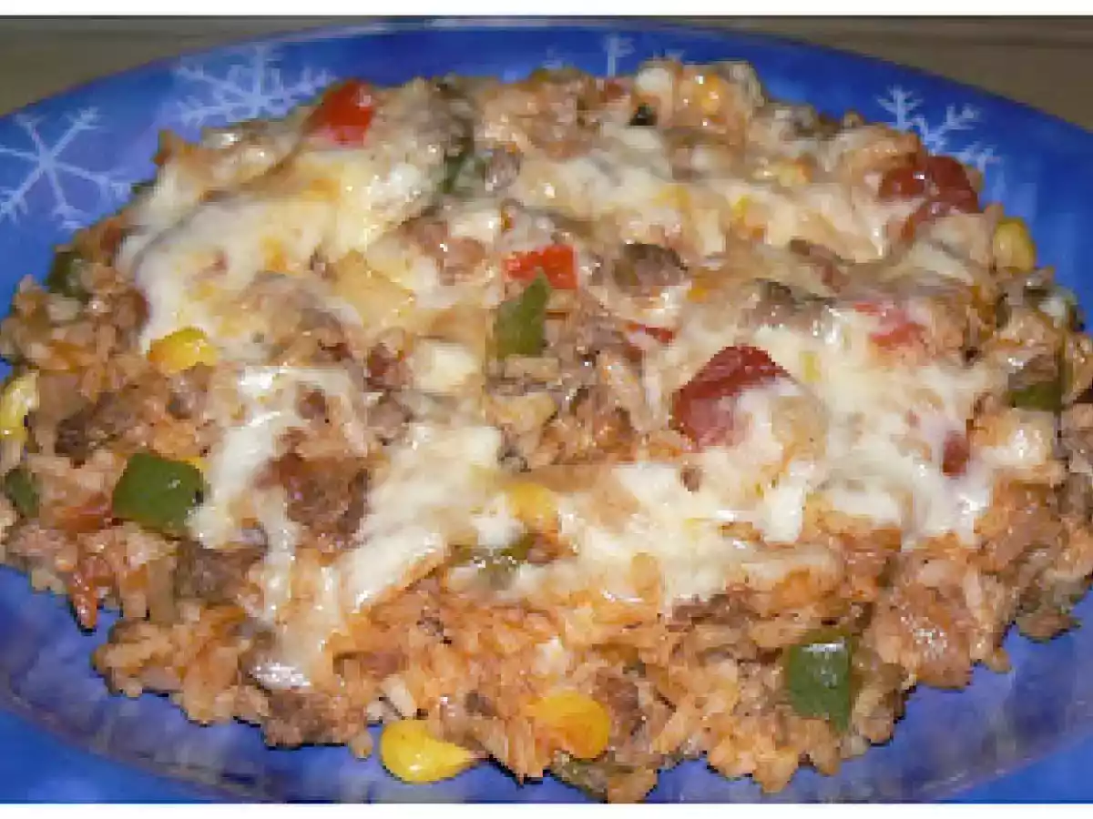 Boeuf et riz à la mexicaine votez maintenant Platfacile25 min3040 Kcal Envoyer cette recette à un ami Imprimer cette page Poser une question à l'auteur Publier votre photo de cette recette Ingrédients 1 1 1/2 tasse de riz instantané 1/2 livre de boeuf haché 1/2 tasse de poivrons rouges et verts coupés en dés 1 tasse de salsa de son choix 1 tasse de maïs en grains surgelé, décongelé 1 tasse d'eau 1 cuillère à thé de poudre de chili 3/4 tasse de cheddar râpé