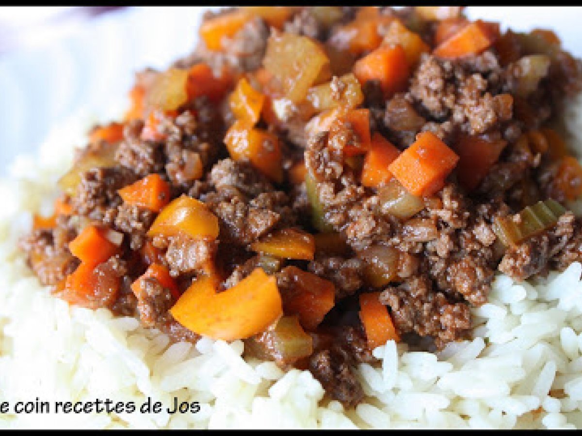 Boeuf haché à la chinoise Platfacile40 min685 Kcal Envoyer cette recette à un ami Imprimer cette page Poser une question à l'auteur Publier votre photo de cette recette Ingrédients 2 1 lb (454 g) boeuf haché 2 cuillères à soupe d'huile végétale 1 gousse ail, hachée 1/2 cuillère à thé de gingembre, en poudre 1 oignon, émincé 2 carottes, coupées finement 2 branches céleri, en dés 1 piment, en dés 1/2 tasse de sauce tomate 1/4 tasse d'eau 1 cuillère à soupe de fécule de maïs 3 cuillères à soupe de sauce soya 1 pincée sel Poivre, au goût Coût estimé: 5.84Euros€ (2.92€/part)