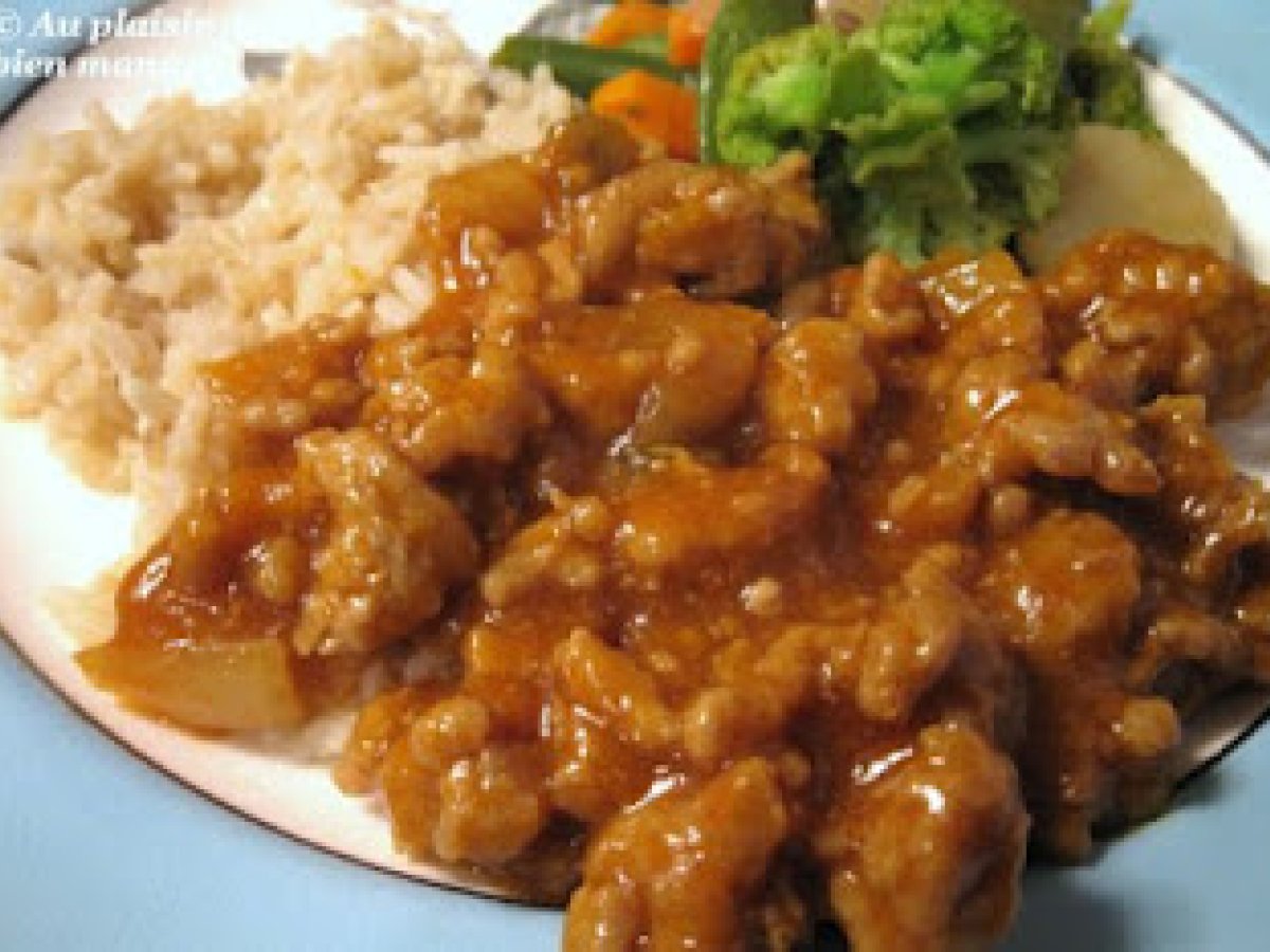 Boeuf sauce aux prunes Platfacile30 min883 Kcal Envoyer cette recette à un ami Imprimer cette page Poser une question à l'auteur Publier votre photo de cette recette Ingrédients 2 1 lb de boeuf haché 1 oignon moyen 1 tasse de sauce aux prunes (sauce à egg roll) 1/2 tasse de ketchup 1/4 tasse de cassonade 1/4 tasse de jus de citron 3 cuillères à table de moutarde préparée 2 cuillères à table de sauce soya quelques gouttes de tabasco 2 cuillères à table de fécule de maïs 2 cuillères à table d'eau