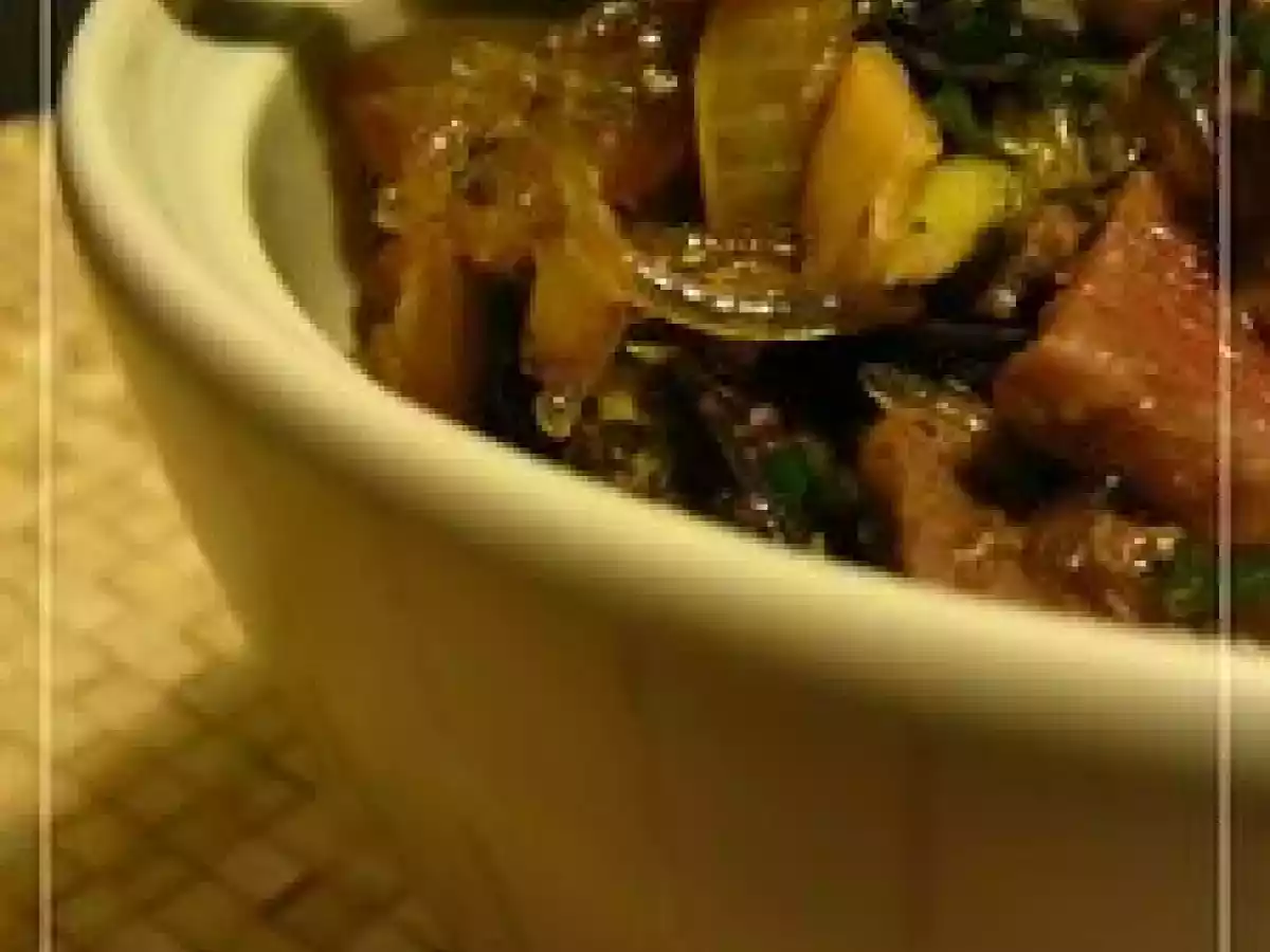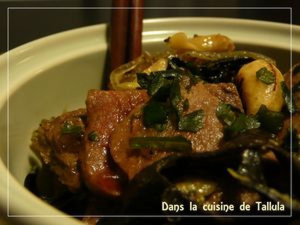 Boeuf sauté aux vermicelles de soja et champignons noirs (défi placard n#6) votez maintenant PrécédentSuivant Platfacile25 min Envoyer cette recette à un ami Imprimer cette page Poser une question à l'auteur Publier votre photo de cette recette Ingrédients 2 100 à 150 g de boeuf 100 g de vermicelles de soja 1 petit oignon 1/2 brocoli 4 champignons noirs déshydratés coriandre fraîche 1 cuillère à café de sauce soja 1 cuillère à café de sauce nuoc man 1 cuillère à café de 5 épices chinoises quelques noix de cajou piment en poudre