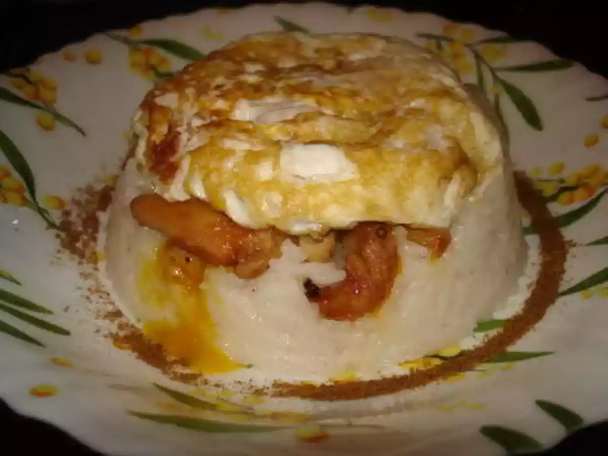 Bol renversé : encore une idée issue d'"un diner presque parfait" PrécédentSuivant Platfacile5 min337 Kcal Envoyer cette recette à un ami Imprimer cette page Poser une question à l'auteur Publier votre photo de cette recette Ingrédients 1 un oeuf sur le plat du poulet revenu avec des épices du riz basmat du cumin en poudre Coût estimé: 1.55Euros€ (1.55€/part)