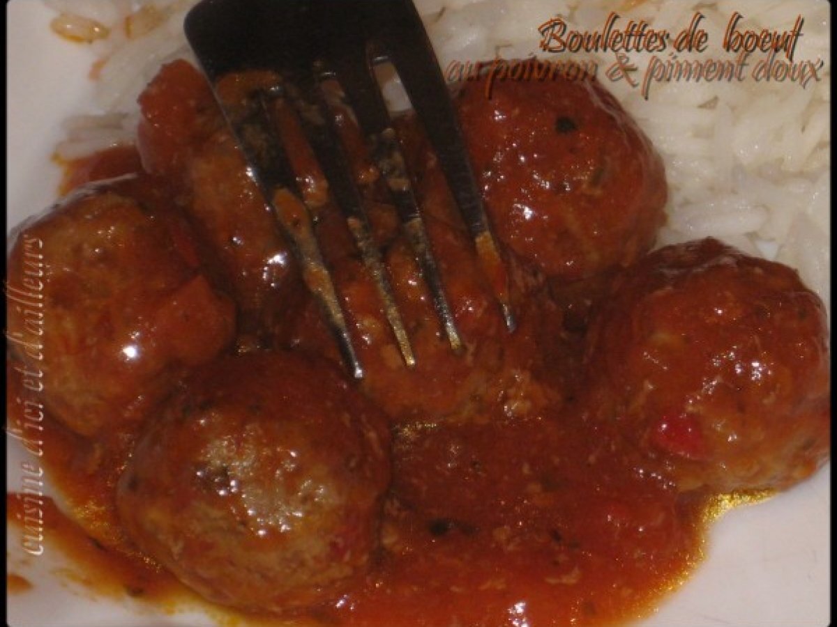 Boulettes de boeuf au poivron &piment doux Platfacile30 min303 Kcal Envoyer cette recette à un ami Imprimer cette page Poser une question à l'auteur Publier votre photo de cette recette Ingrédients 4 500 gr de viande hachée 1 escalope de poulet 1 oignon coriandre 2 Cuillères à soupe de lait en poudre écrémé 2 Cuillères à soupe de piment doux en poudre 1 poivron rouge sel poivre Coût estimé: 7.66Euros€ (1.92€/part)