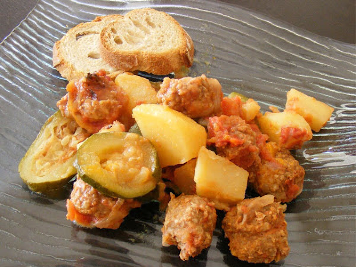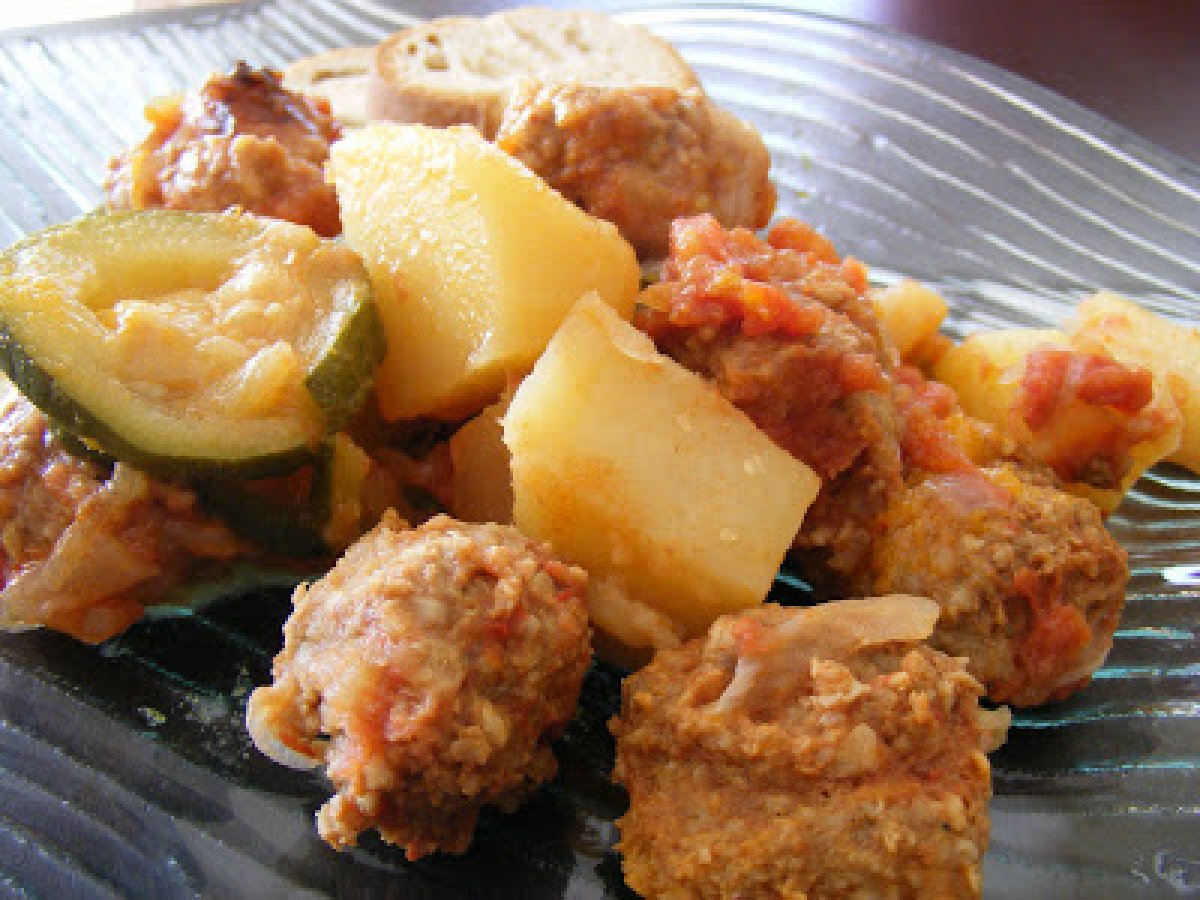 Voilà un bon petit plat avec des boulettes de bœuf aux courgettes et aux pommes de terre.C'est très facile à faire et délicieux.Bon appétit!