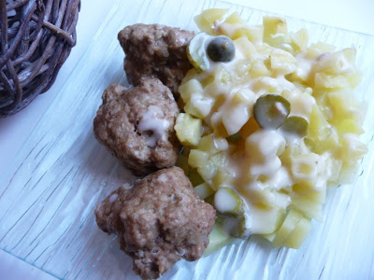 Boulettes de boeuf, pommes de terre et sauce aux cornichons Platfacile47 min512 Kcal Envoyer cette recette à un ami Imprimer cette page Poser une question à l'auteur Publier votre photo de cette recette Ingrédients 2 200 g de boeuf haché 20 g de chapelure 1 petit oignon (environ 50 g) 1 oeuf 1 cuillère à café de sel Poivre 400 g d'eau 1 cube de kubor 300 g de pommes de terre coupées en cubes 2 cuillères à soupe de crème (environ 50 g) 1/2 cuillère à café de jus de citron 20 g de farine 1 cuillère à café de sel Poivre 2 cornichons Coût estimé: 3.4Euros€ (1.7€/part)