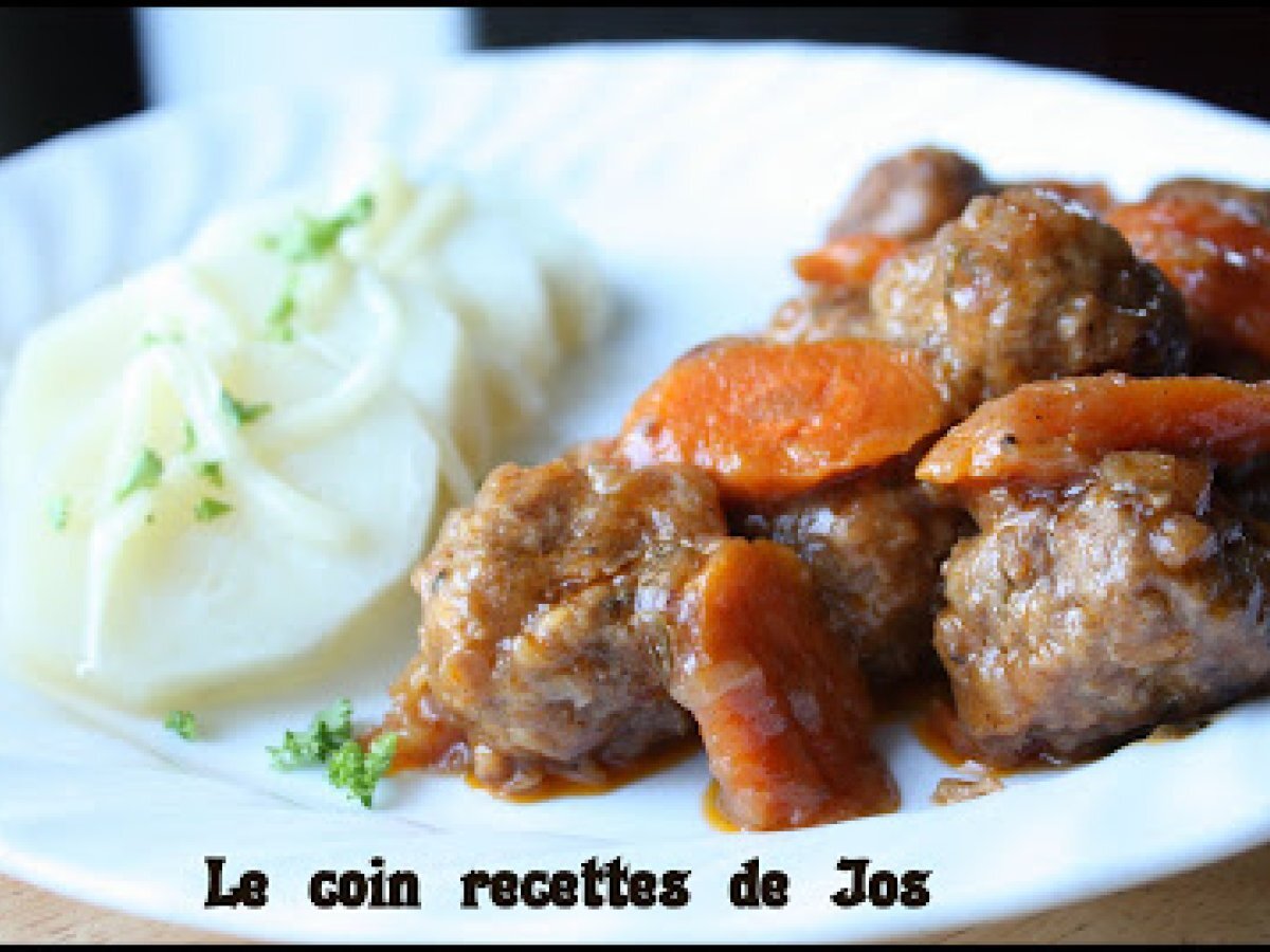 Boulettes de viande à la bière votez maintenant Platfacile1 h 12 m Envoyer cette recette à un ami Imprimer cette page Poser une question à l'auteur Publier votre photo de cette recette Ingrédients 2 3/8 de tasse huile canola 1 oignon haché 3 carottes émincées 3/4 de tasse de bouillon de boeuf 2 cuillères à soupe de sauce Worcestershire 3/4 de tasse de bière 3 cuillères à soupe de ketchup 1 cuillère a thé de thym séché 1/2 cuillère a thé de sel 1 cuillère a thé de poivre 2 cuillères à soupe de fécule de mais délayée dans 3 cuillères à soupe de bière BOULETTES: 1 livre de boeuf haché 1 livre de chair de saucisse 1 tasse de chapelure sèche Le zeste râpé de 1 citron 1 oeuf légèrement battu 2 cuillères à soupe de sauce Worcestershire 1/2 cuillère à thé de sel 1 cuillère à thé de poivre 1 cuillère à thé de thym séché 1 gousse d'ail écrasée