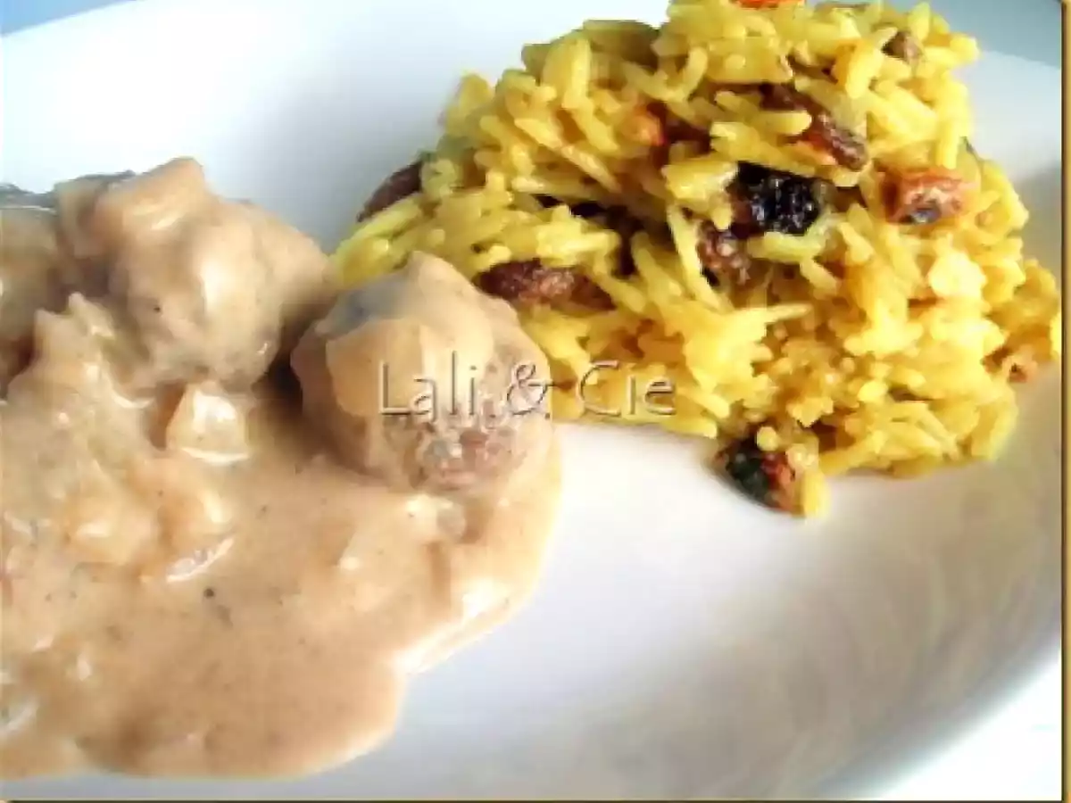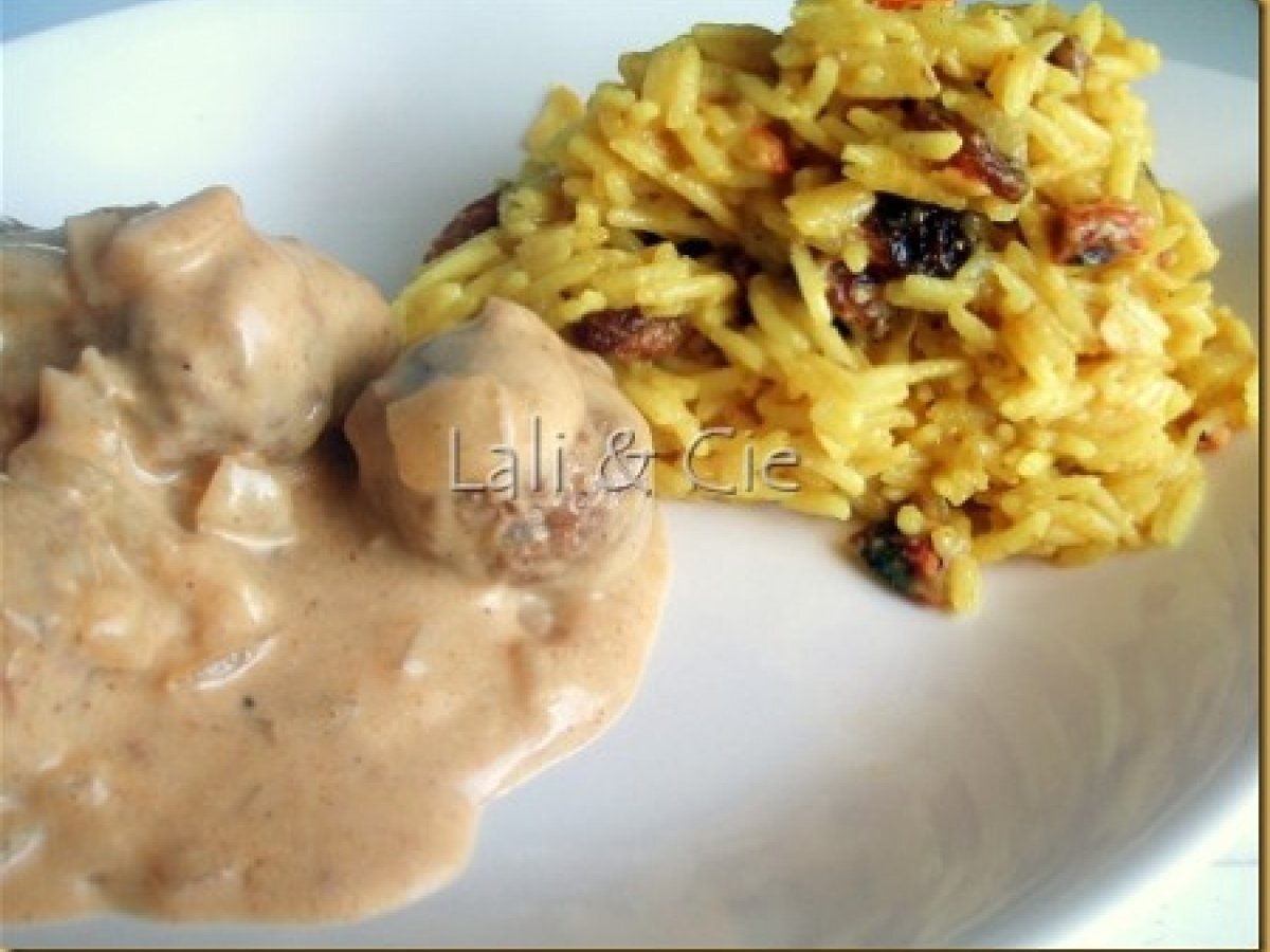 Boulettes de viande sauce mangue/coco et riz au citron...