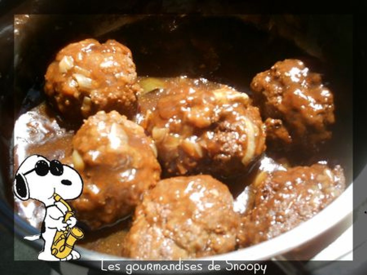 Boulettes sauce chasseur Platfacile40 min Envoyer cette recette à un ami Imprimer cette page Poser une question à l'auteur Publier votre photo de cette recette Ingrédients 4 500g de hachis de boeuf 3 oeufs 2 tranches de pain 2 oignons 1 échalote Sel, poivre, muscade Lait Farine Chapelure Pour la sauce: 2 oignons Beurre 2 feuilles de laurier 2 cas de sirop de Liege Epaississant pour sauces brunes