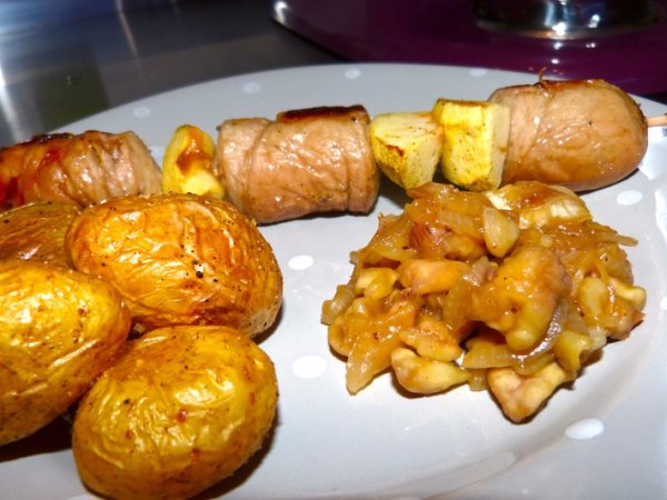 Le boudin, c’est un produit bon marché, et simple à préparer. Je voulais une façon originale de la présenter. L’idée des brochettes c’est sympa car on peut rajouter des pommes et la cuisson est rapide car on le coupe en 3 morceaux. Une recette qui pourrait faire merveille sur vos tables de fêtes !