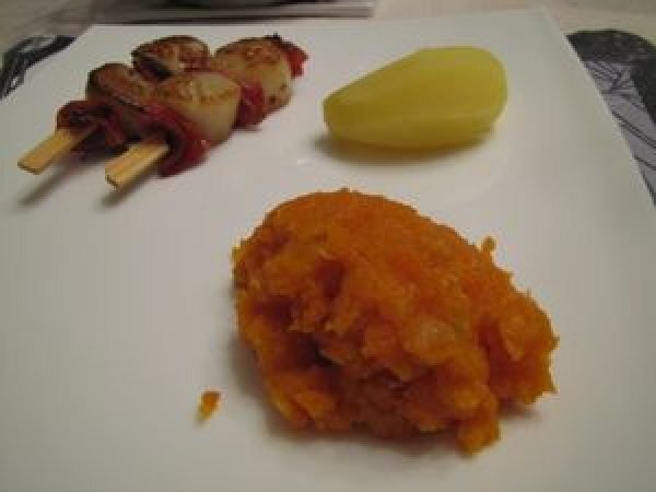 Brochettes de saint-jacques au chorizo, purée de carottes PrécédentSuivant Platfacile55 min Envoyer cette recette à un ami Imprimer cette page Poser une question à l'auteur Publier votre photo de cette recette Ingrédients 4 24 noix de saint-Jacques 160 g de chorizo de 2-3 mm s'épaisseur 4 carottes 70 gr de beurre à 41%MG 4 cuillères à café d'huile d'olive Sel poivre