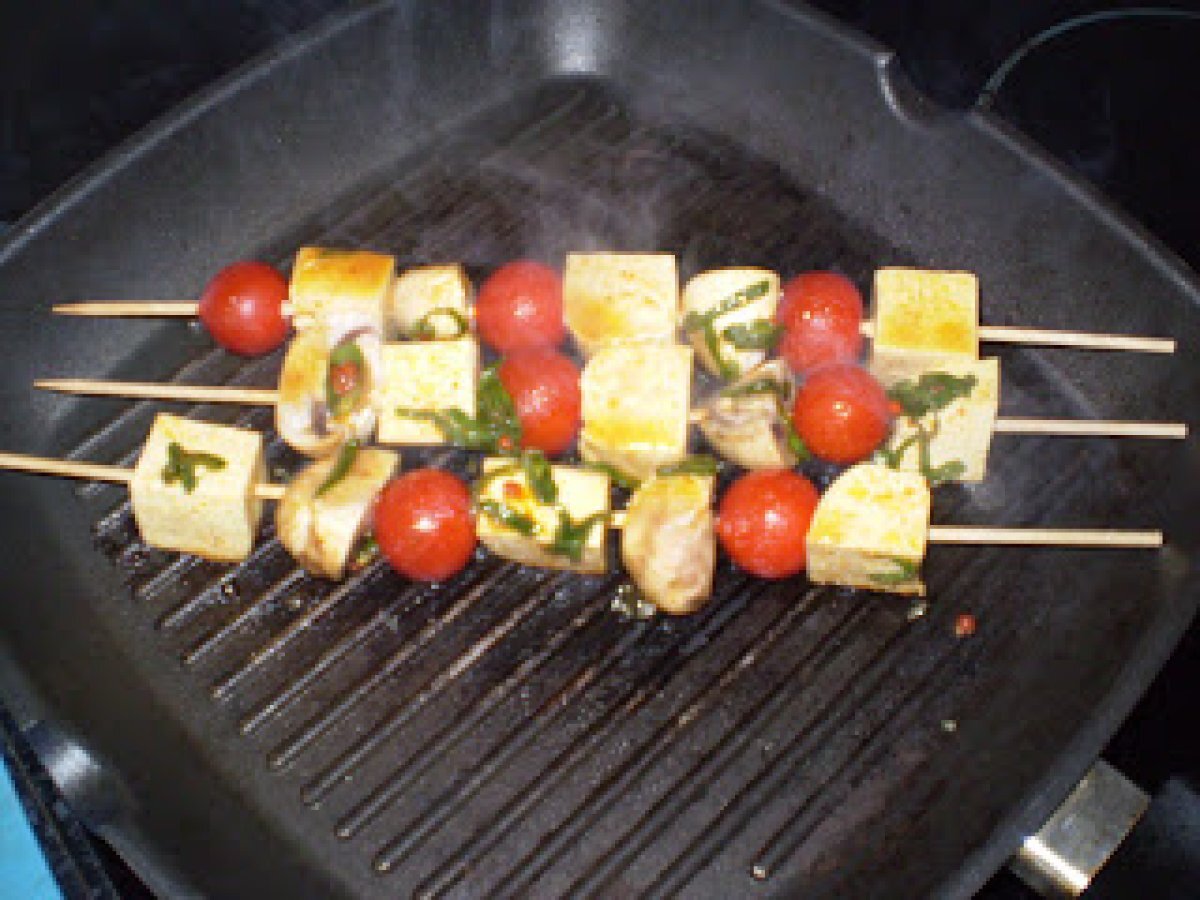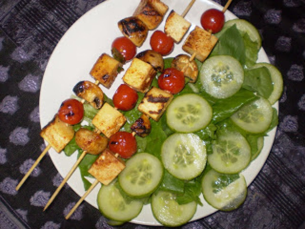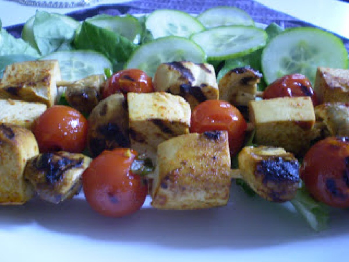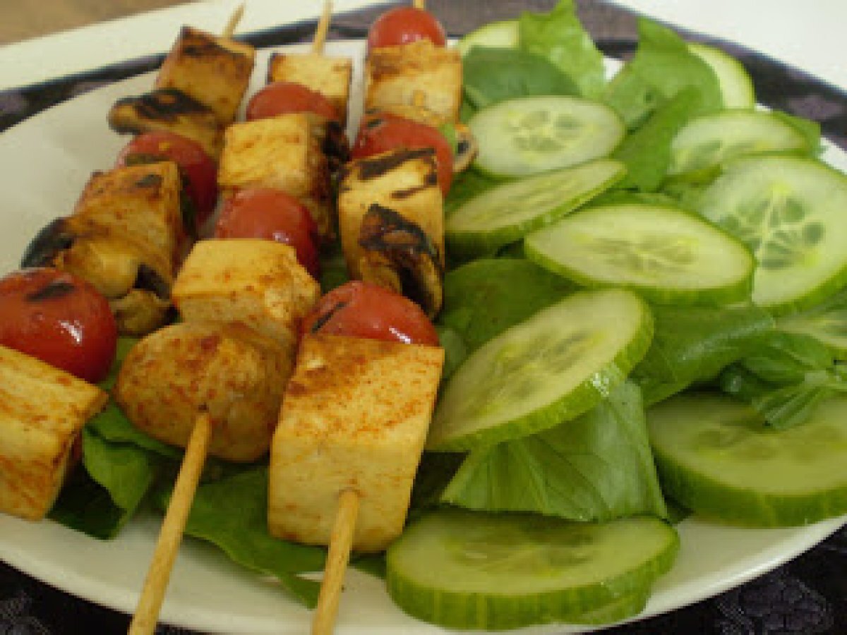 Brochettes de tofu au saté (ou autre épice de votre choix)