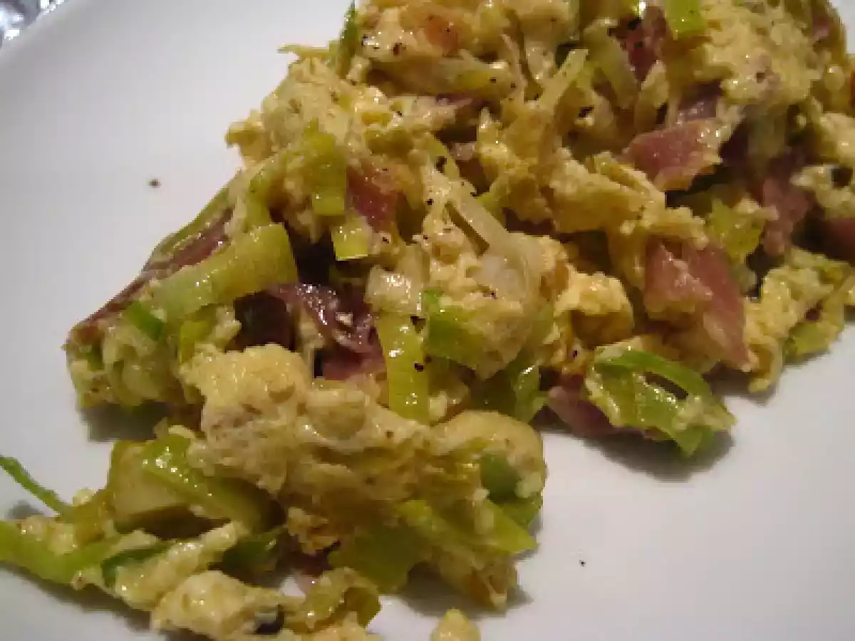 Brouillade d'oeufs aux poireaux, jambon cru et curry Platfacile30 min586 Kcal Envoyer cette recette à un ami Imprimer cette page Poser une question à l'auteur Publier votre photo de cette recette Ingrédients 1 2 poireaux 2 oeufs 2 cuillères à soupe de crème fraîche 2 tranches de jambon cru Huile d'olive 1 grosse cuillère à café de curry en poudre Coût estimé: 2.87Euros€ (2.87€/part)