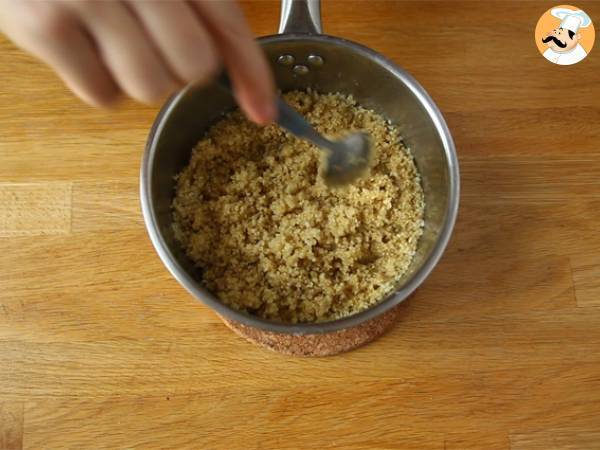 Laver le quinoa en le rinçant plusieurs fois. Faire bouillir l'eau dans une casserole à couvert puis ajouter le sel et le quinoa. Faire bouillir puis laisser cuire 10 min à couvert sur feu moyen. Laisser ensuite reposer à couvert pendant 20 minutes.