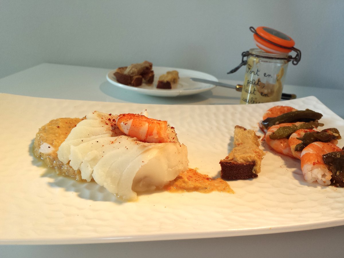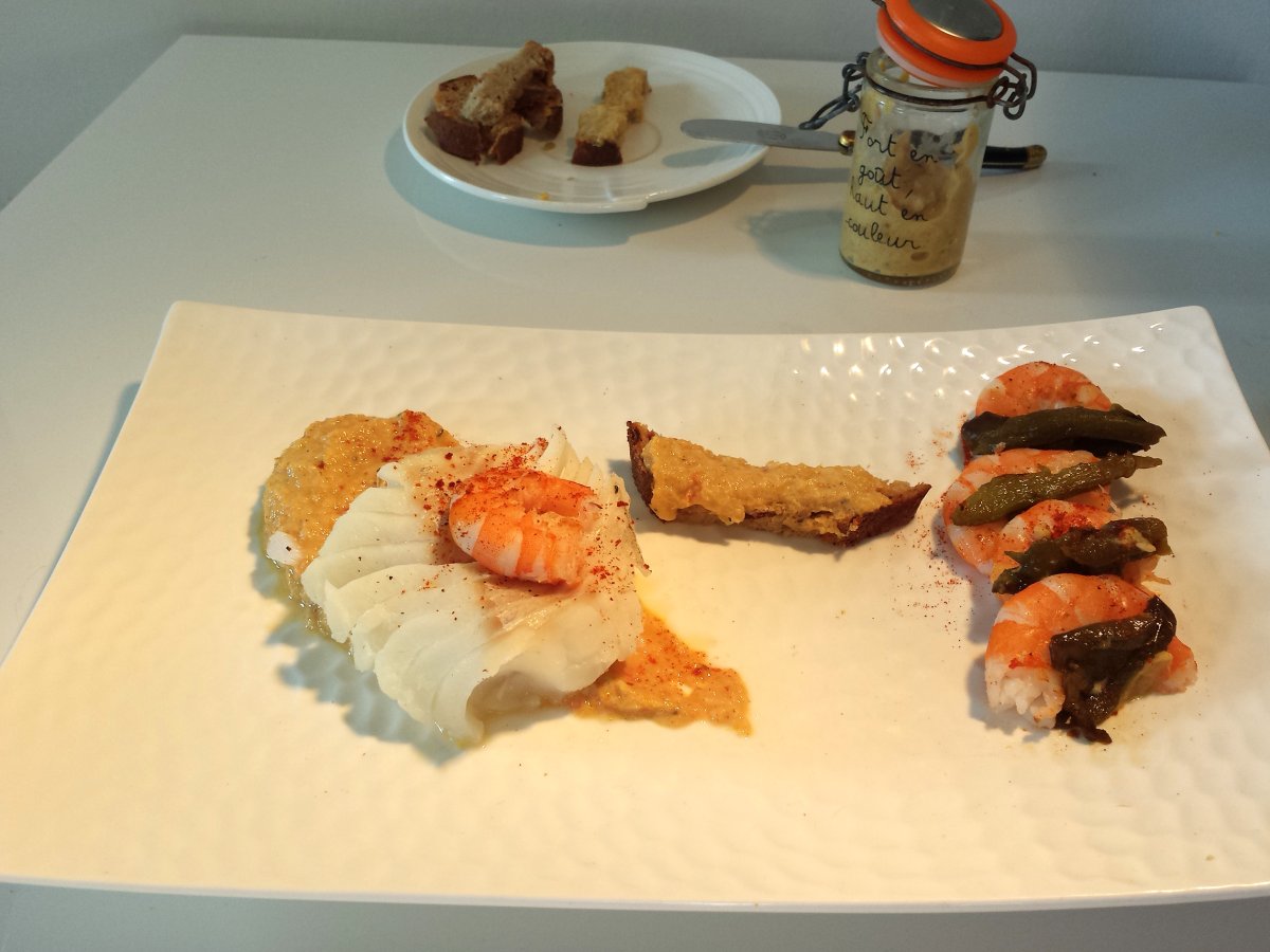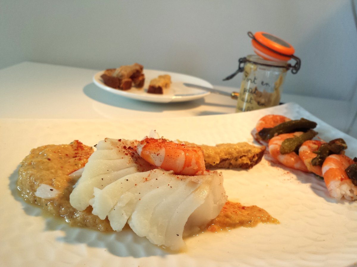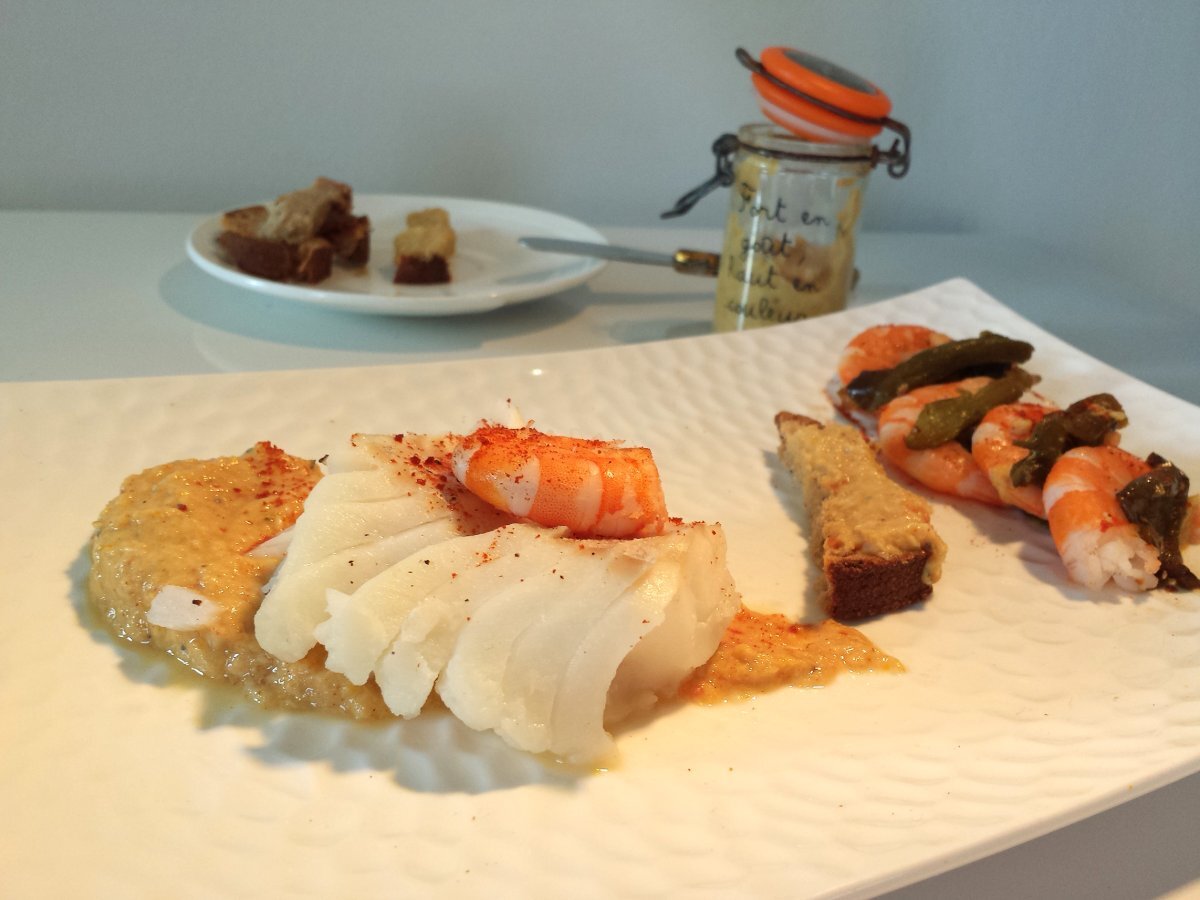 Cabillaud à la crème de poivrons aux crevettes PrécédentSuivant Platfacile1 h 15 m425 Kcal Envoyer cette recette à un ami Imprimer cette page Poser une question à l'auteur Publier votre photo de cette recette Un plat léger et sain, facile à faire Ingrédients 2 2 poivrons ( de la couleur souhaitée) 2 dos de cabillaud 100g de crevettes roses non décortiquées pour la crème de poivrons 10 crevettes 1 cuillère à café d' huile d' olive 40g de fromage frais Paprika Sel Poivre 2 tranches de pain 1 court bouillon ( maison, 1 sachet ou 1 cube)