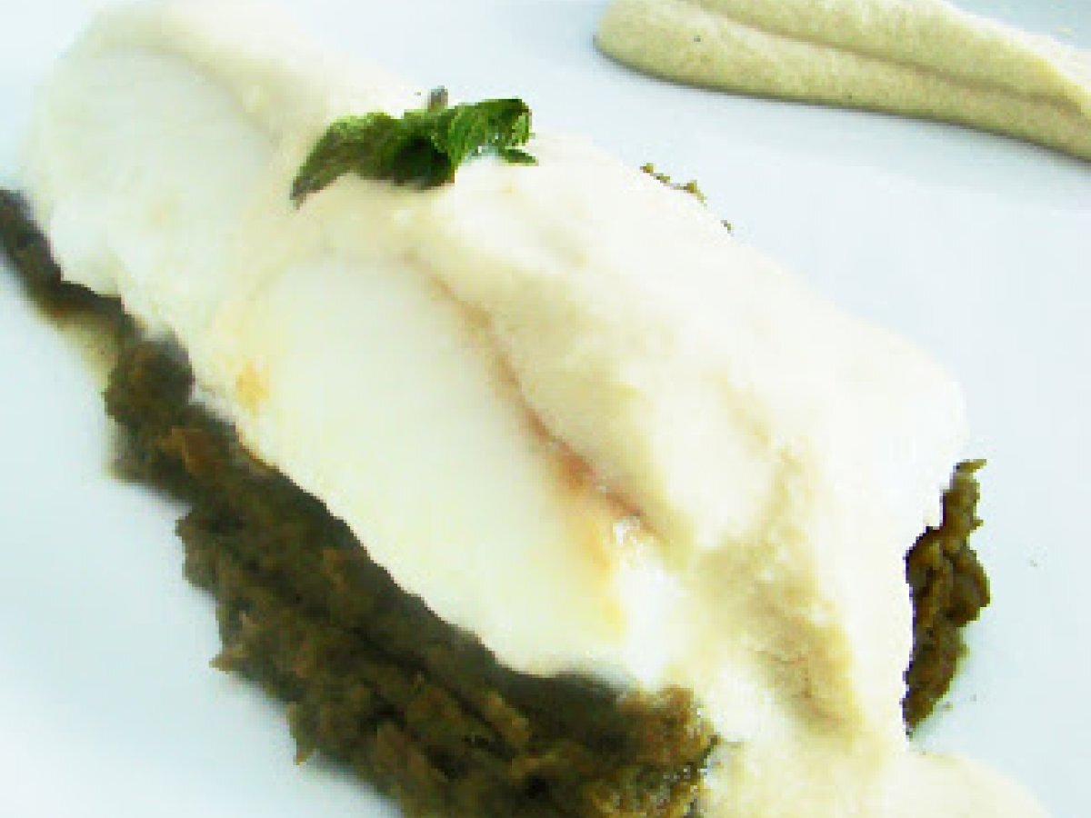 Cabillaud a la puree d'amandes et d'artichaut a la menthe