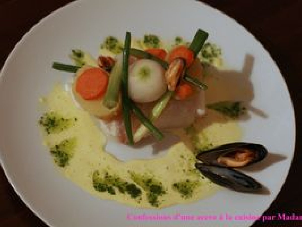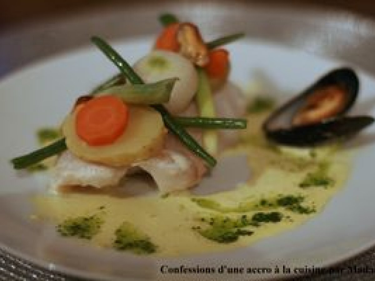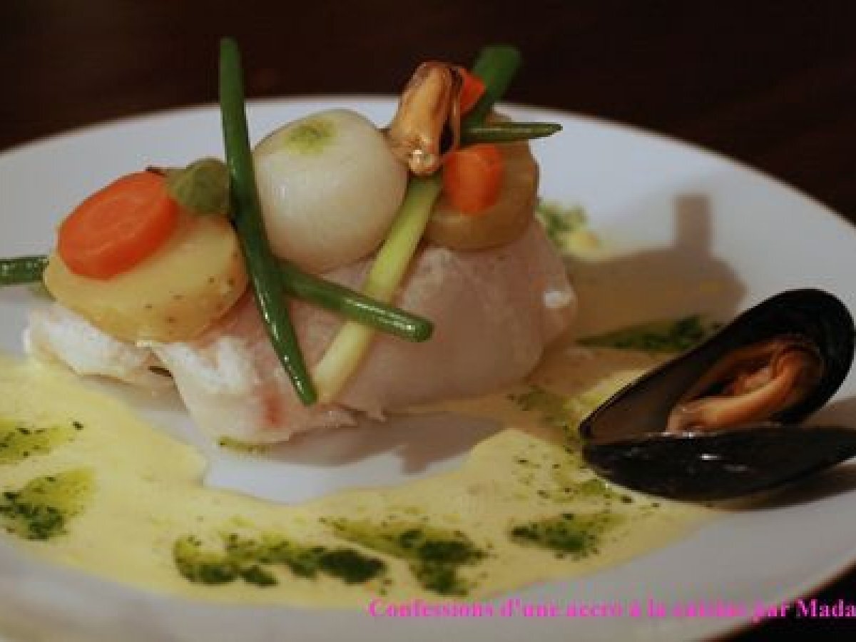 Cabillaud demi-sel en aïoli façon jean françois piège PrécédentSuivant Platfacile36 min Envoyer cette recette à un ami Imprimer cette page Poser une question à l'auteur Publier votre photo de cette recette Ingrédients 4 Pour le cabillaud : 4 pavés de cabillaud d'environ 150 g chacun 1 poignée de gros sel gris de guérande 1/2 L de lait 1 gousse d'ail 1 anis étoilé 1 branche de romarin 1 poignée de haricots verts 1 carotte 4 mini poireaux 4 petits navets 4 cébettes ou oignons nouveaux 2 petites pommes de terre à chair ferme 10 g de beurre sel poivre Pour l'huile de basilic: 1 bouquet de basilic 8 cl d'huile d'olive 1 gousse d'ail Pour l'aïoli: 25 cl d'huile d'olive 2 gousses d'ail 1 jaune d'oeuf 1 trait de jus de citron Pour les moules: 1/2 L de moules 1 feuille de laurier 1 branche de thym 1 morceaux de zeste d'orange