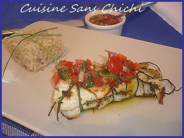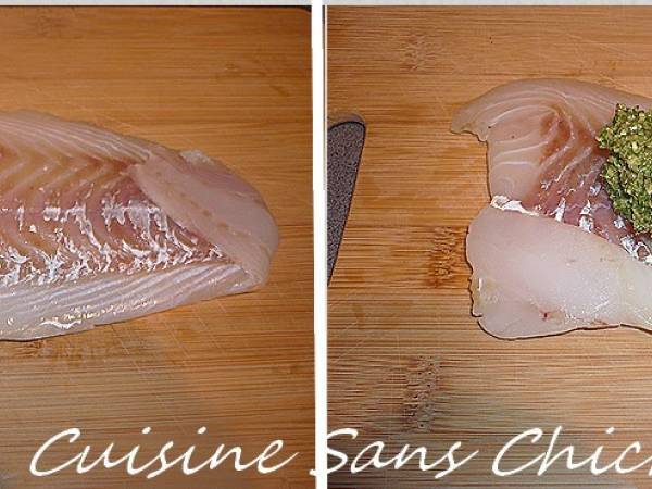 Cabillaud farci au pesto, accompagné de sauce vierge