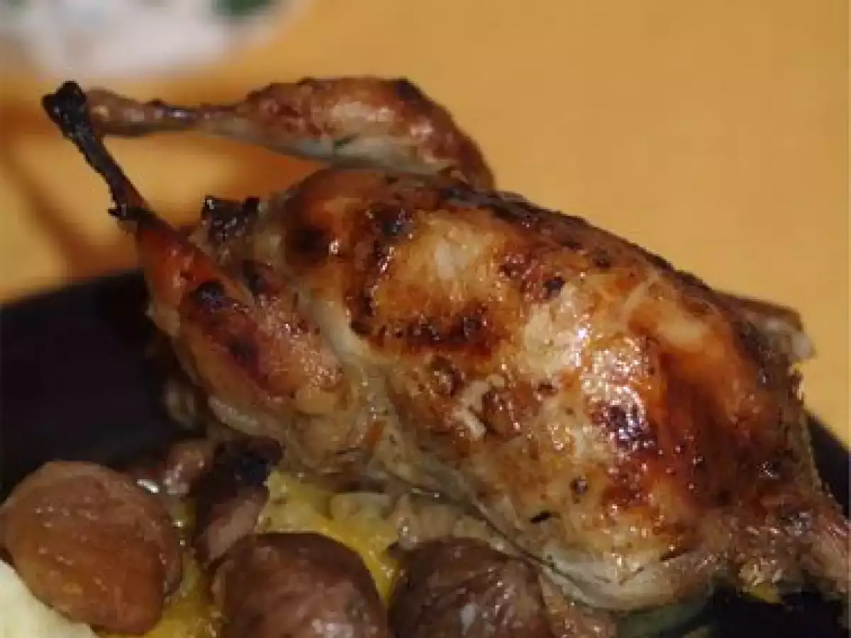Cailles farcies aux marrons et à l'orange PrécédentSuivant Platfacile50 min Envoyer cette recette à un ami Imprimer cette page Poser une question à l'auteur Publier votre photo de cette recette Ingrédients 4 4 cailles 250 g de chair à saucisse 1 boîte de marrons 1 échalote 1/2 cuillère à café de 5 épices 1 cube de bouillon de poule 4 à 5 oranges 2 à 3 cl de grand marnier 1 oignon sel poivre huile 1 cuillère à soupe de vinaigre balsamique