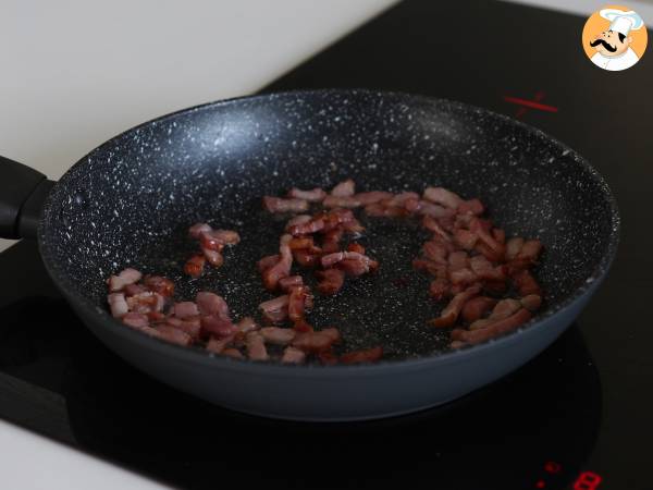 Commencer par faire revenir les lardons quelques minutes dans une poêle sur feu moyen jusqu'à ce qu'ils soient bien dorés.