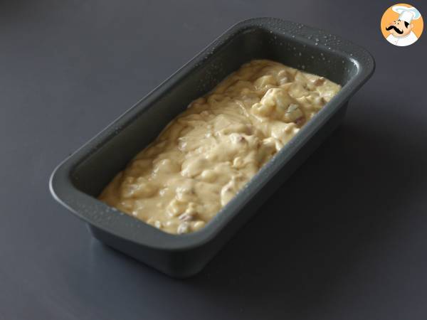 Verser la pâte dans un moule à cake graissé et faire cuire dans un four préchauffé à 180°C pendent 40 à 45 minutes (vérifier la cuisson).