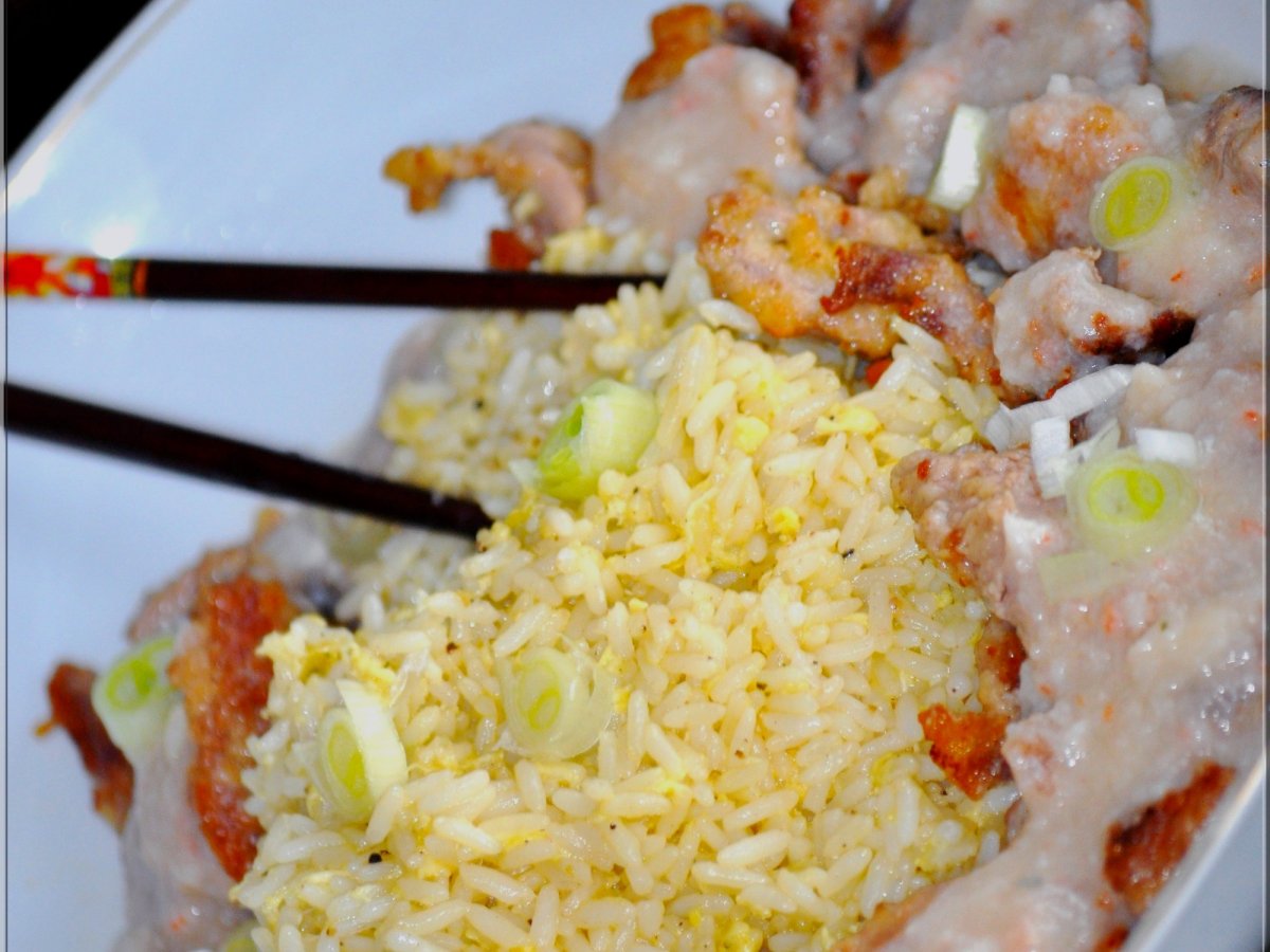 Canard sauce crevette riz frit