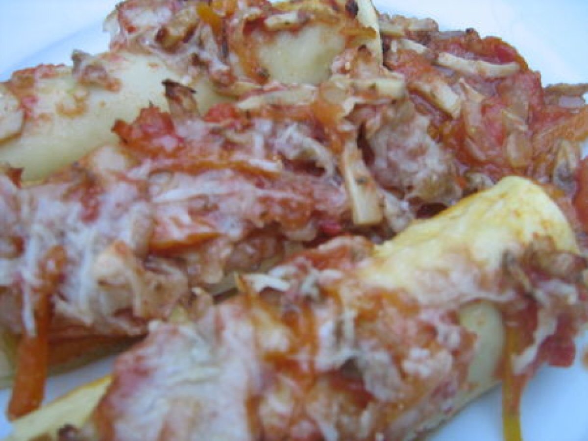 Cannelloni d'effilochée de boeuf aux tomates et petits légumes