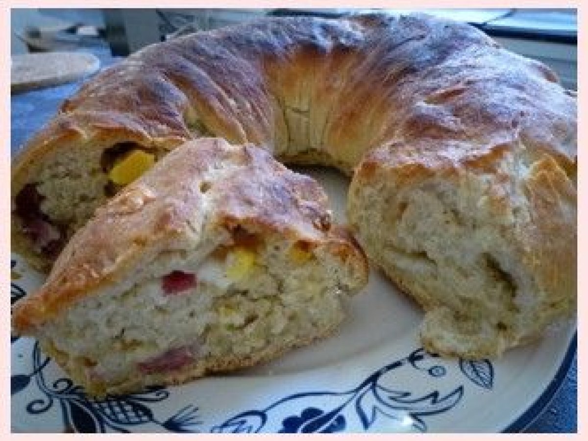 - Rejoignez et collez les deux bouts pour faire une couronne. Placez dans un moule rond, couvrez et laissez reposer 30 minutes.