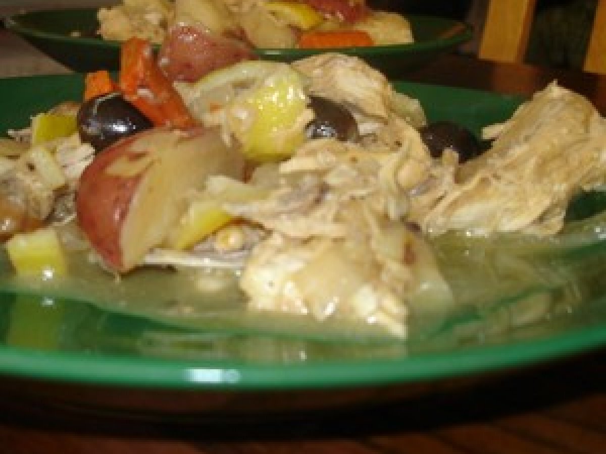 Voici une adaptation de la Tajine, pour écouler un reste de poulet pas très bon, rôti au citron et a la moutarde...
