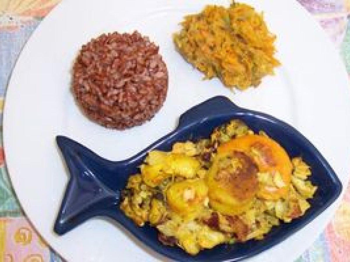 Cassolette de poisson et fruits de mer Platfacile27 min402 Kcal Envoyer cette recette à un ami Imprimer cette page Poser une question à l'auteur Publier votre photo de cette recette Ingrédients 4 120 g de lieu (ou autre poisson) une darne de saumon 250 g de noix de coquilles St Jacques 250 g de moules décortiquées (180 g cuit) 2 cuillères à café de curcuma Poivre noir 25 cl de crème à 4% 2 cuillères à café d'huile d'olive 3 échalotes une courgette Coût estimé: 18.46Euros€ (4.62€/part)