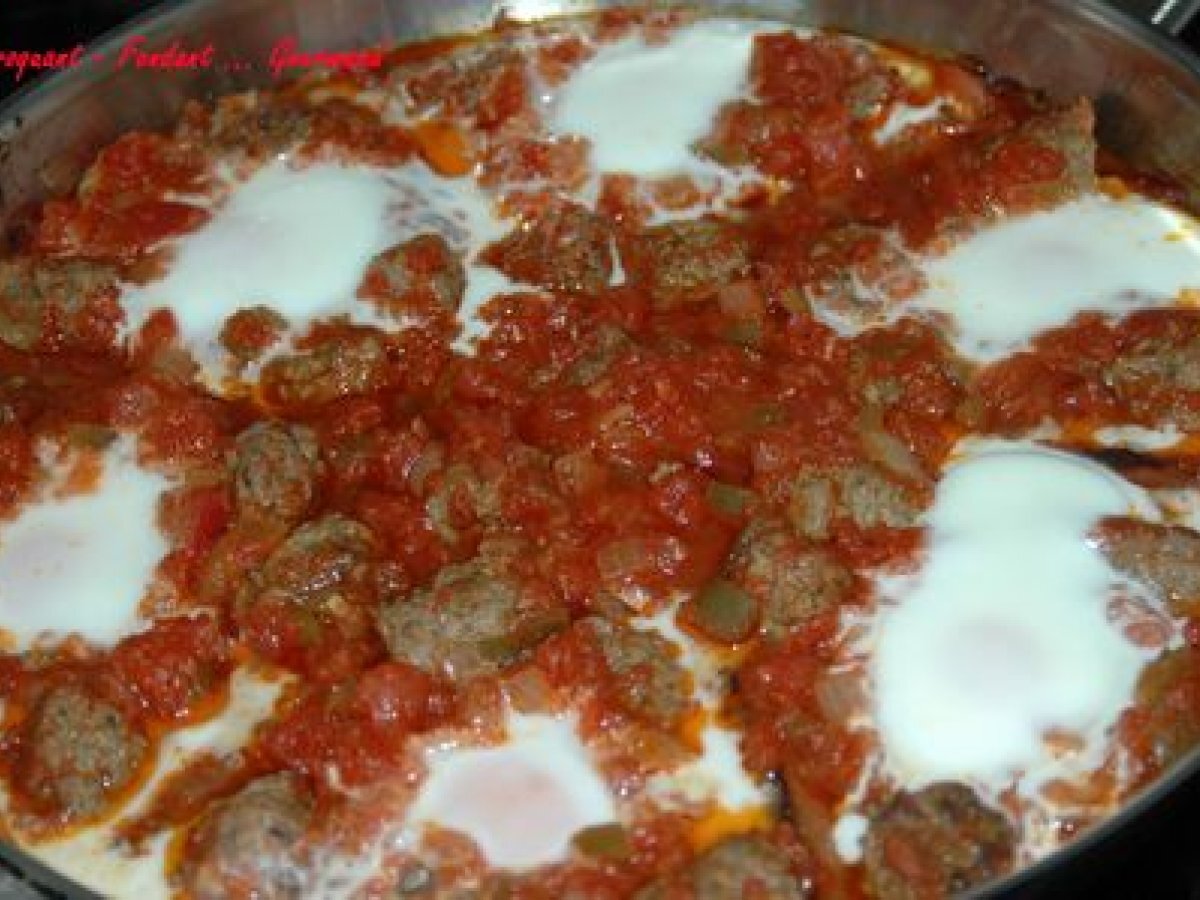 Faire chauffer de l'huile dans une grande poêle et faire dorer les boulettes sur toutes les faces. Les retirer de la poêle et réserver.- Pour la chakchouka, couper le poivron en dés. Émincer l'oignon et l'ail.