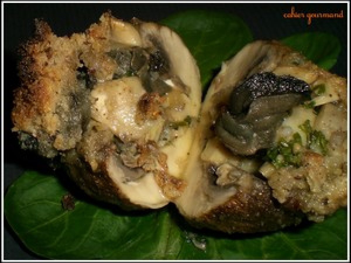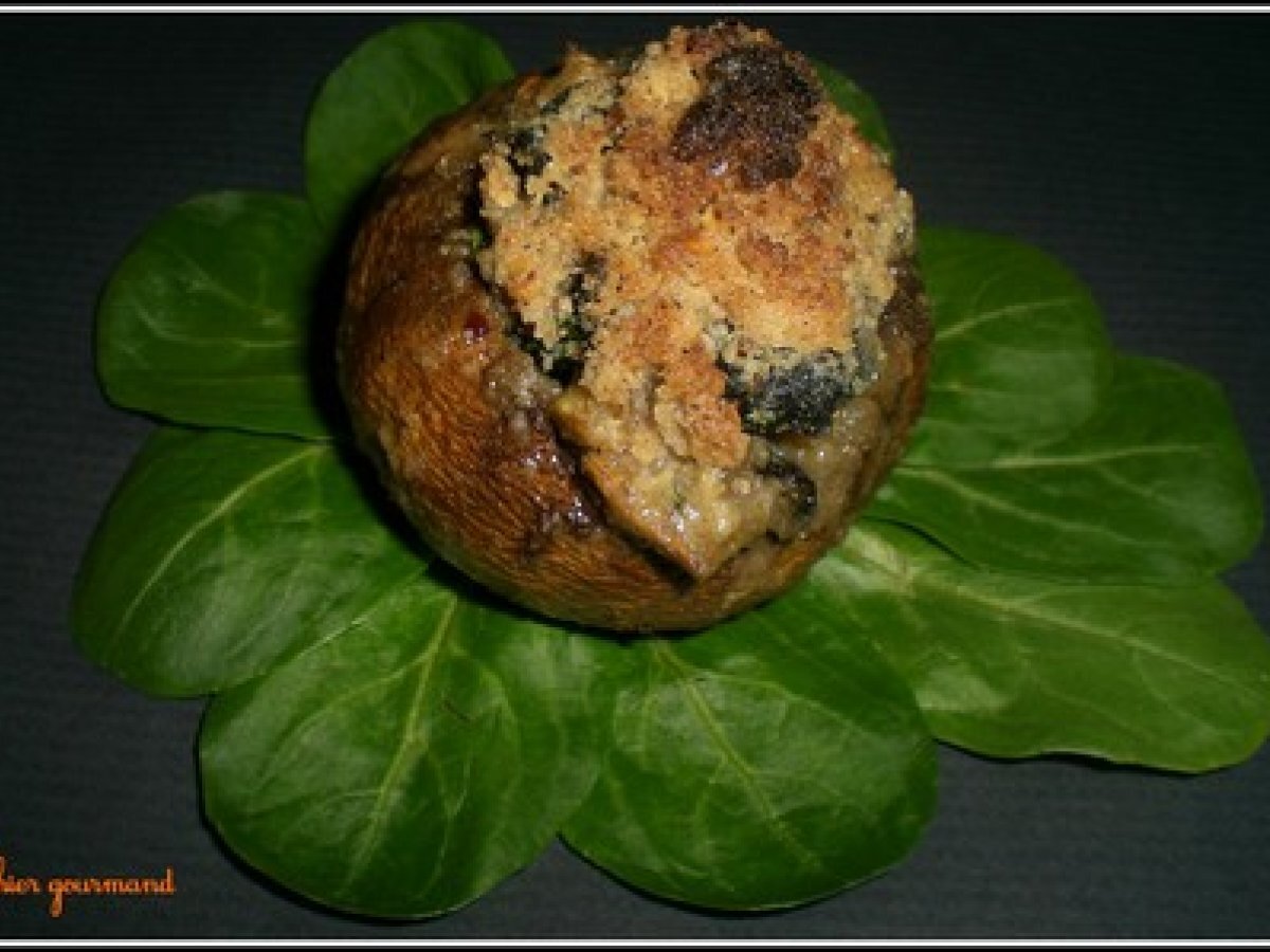 Champignons farcis aux escargots à l'huile truffée, crumble de blé noir et noisette