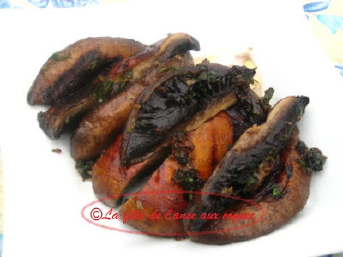 Champignons portobello à l'ail. PrécédentSuivant Platfacile22 min Envoyer cette recette à un ami Imprimer cette page Poser une question à l'auteur Publier votre photo de cette recette Ingrédients 4 4 à 8 champignons portobello 3 gousses d'ail hachées finement ¼ tasse de vin blanc 4 cuillères à soupe huile d'olive 3 cuillères à soupe de persil plat haché Sel et poivre