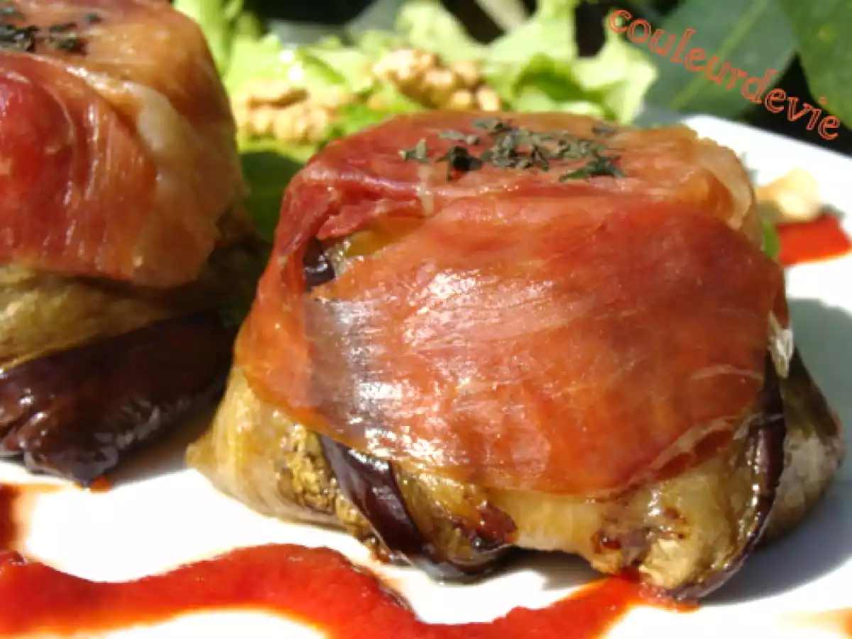 Charlotte d'aubergine à la ricotta Platfacile45 min Envoyer cette recette à un ami Imprimer cette page Poser une question à l'auteur Publier votre photo de cette recette Ingrédients 2 2 aubergines 1/2 botte de basilic 125 g de ricotta 4 tranches de jambon cru 6 tomates confites huile d’olive sel poivre du coulis de tomates