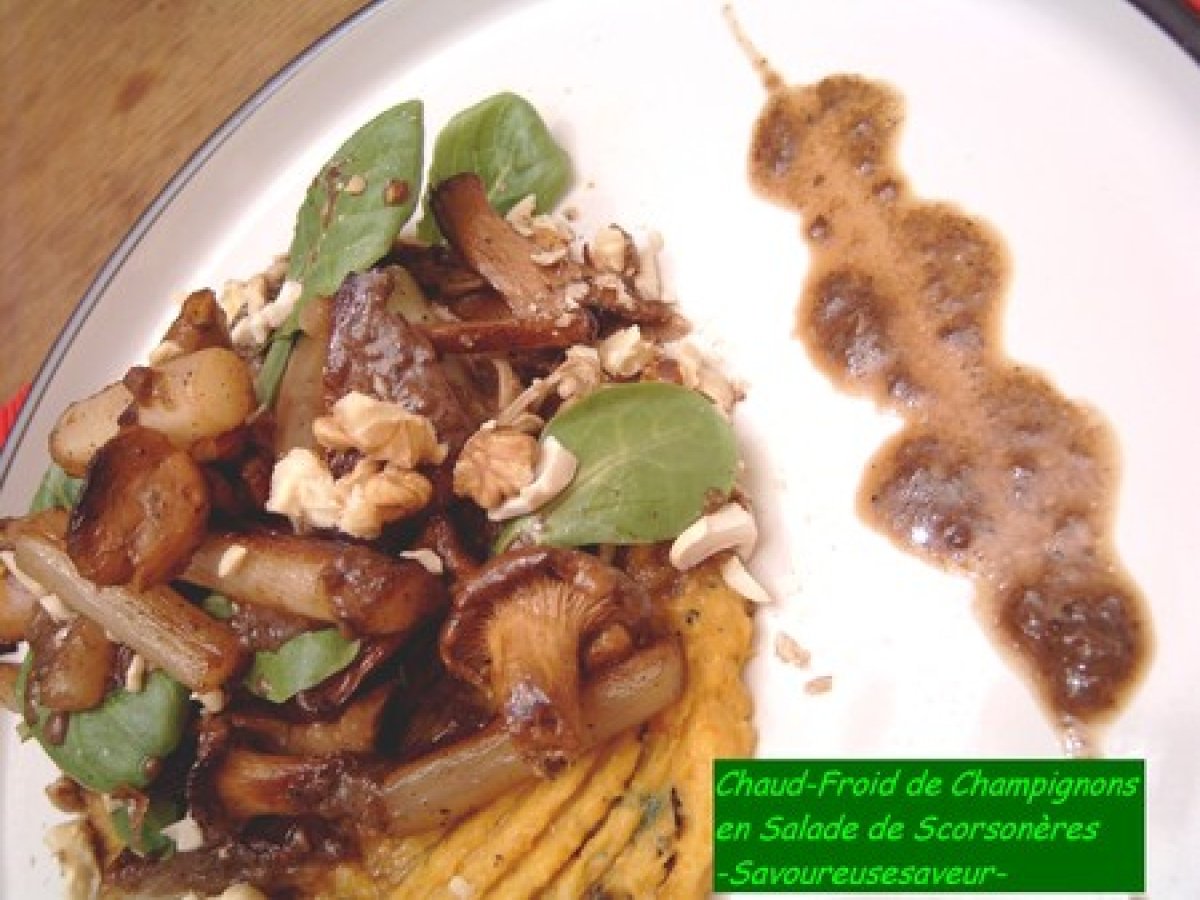 Chaud-froid de champignons en salade de scorsonères votez maintenant PrécédentSuivant Platfacile20 min Envoyer cette recette à un ami Imprimer cette page Poser une question à l'auteur Publier votre photo de cette recette Tout simplement différent. Ingrédients 2 8 scorsonères 1/2 l de vinaigre blanc 1/2 L de lait mélange de champignons: shiitakes, pleurotes, girolles, pieds de mouton ... 3 cuillère à soupe d'huile d'olive 50 g de noix et noisettes 50 g de mâche fleur de sel poivre noir du moulin 1 gros shiitake 5 cl de vinaigre balsamique 5 cl huile d'olive 5 cl huile de noisettes fleur de sel poivre noir du moulin cerneaux de noix noisettes