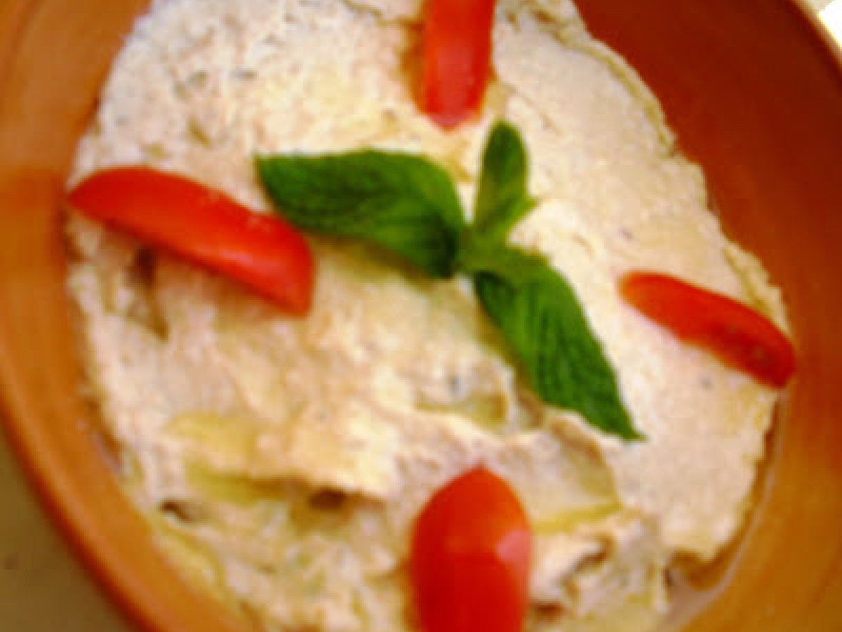 Faire dégorger une aubergine coupée en deux et la faire griller, plonger de suite dans de l'eau froide pour pouvoir l'éplucher. - Mettre dans le bol mixer, ajouter 2 cuillères à soupe de "tahina" (pâte de sésame), 2 cuillères à soupe d'huile d'olive, le jus d'un citron, une gousse d'ail, sel et poivre et mixer le tout.