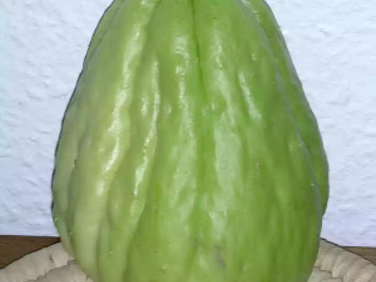 - Epluchez la chayotte (attention il y a quelques petits piquants) et coupez la en morceaux.