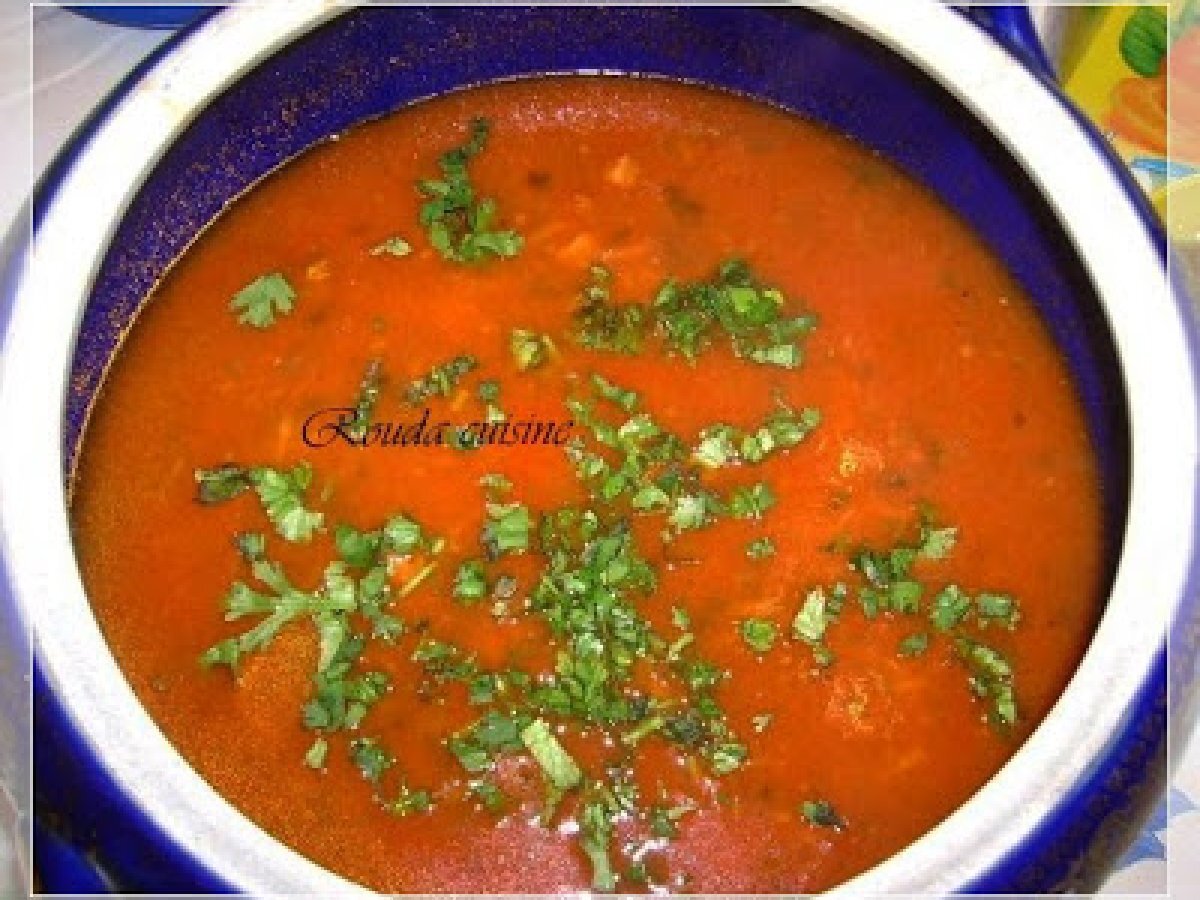 Chorba m'katfa (soupe aux vermicelles) Platfacile22 min Envoyer cette recette à un ami Imprimer cette page Poser une question à l'auteur Publier votre photo de cette recette Ingrédients 2 500 g de viande de mouton (collier, basses côtelettes) 1 gros oignon 1 petite courgette tendre 1 kg de tomates mûres 1 grosse poignée de pois chiche trempés la veille 1 poignée de petits pois tendres (en saison) 1 botte de coriandre fraîche 1 petite côte de céleri quelques feuilles de menthe fraîche 2 cuillères à soupe ou plus de concentré de tomate un peu d'huile (3 à 4 cuillères à soupe) sel poivre cannelle paprika 1 poignée de m'quatfa ou à défaut de cheveux d'ange citron