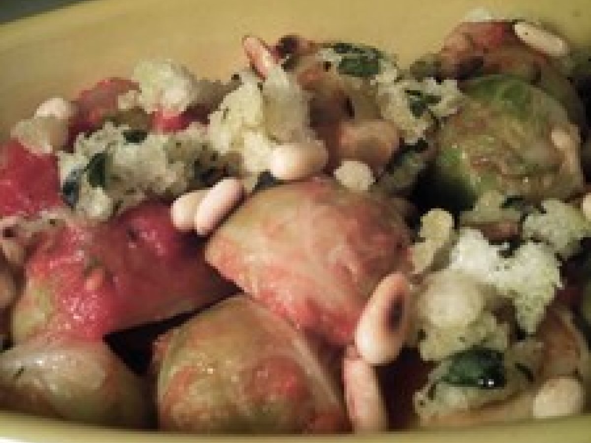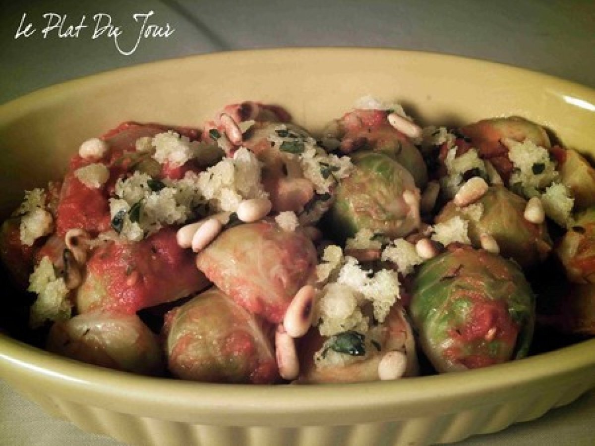 - Servir les choux de Bruxelles après les avoir parsemés de pain au basilic et de pignons grillés.