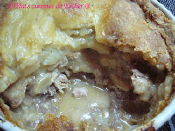 Moi, je n'ai pas mis de pâte au fond de la rôtissoire, cuit découvert 1h à 350F et couvert 4h à 300F et je rajoute du bouillon au besoin =)