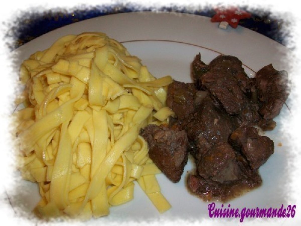 - Réservez la viande au chaud. Faites réduire le jus de cuisson 5 minutes à feu vif, filtrez et remettez - le dans la cocotte avec la viande et les girolles. Donnez un bouillon et servez avec les tagliatelles.
