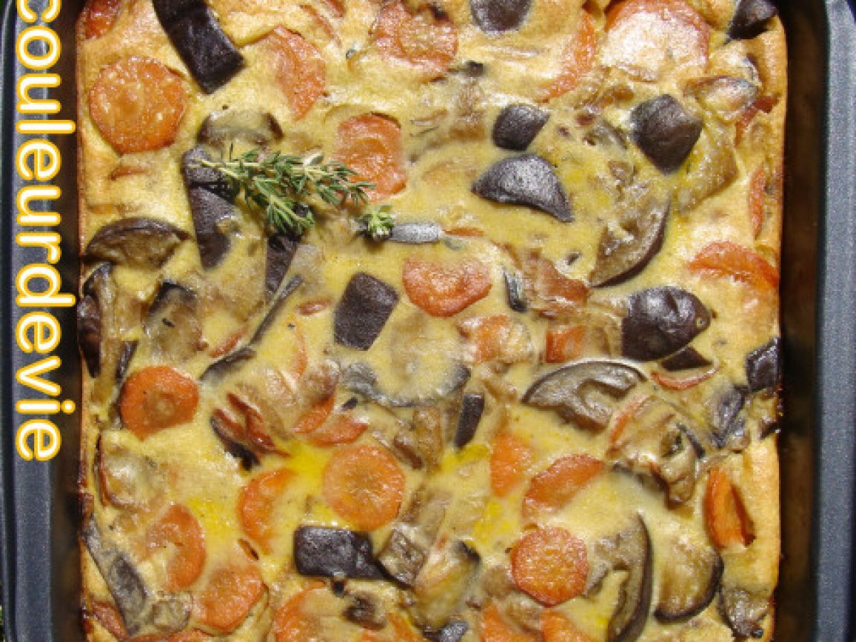 Clafoutis d'aubergines et carottes au curry PrécédentSuivant Platfacile55 min294 Kcal Envoyer cette recette à un ami Imprimer cette page Poser une question à l'auteur Publier votre photo de cette recette Ingrédients 4 1 grosse aubergine ou deux petites 400 g de carottes 1 gros oignon 1 gousse d’ail 50 g de farine 20 cl de lait de coco 2 oeufs 2 cuillères à soupe d’huile d’olive thym et curry en poudre Coût estimé: 2.71Euros€ (0.68€/part)