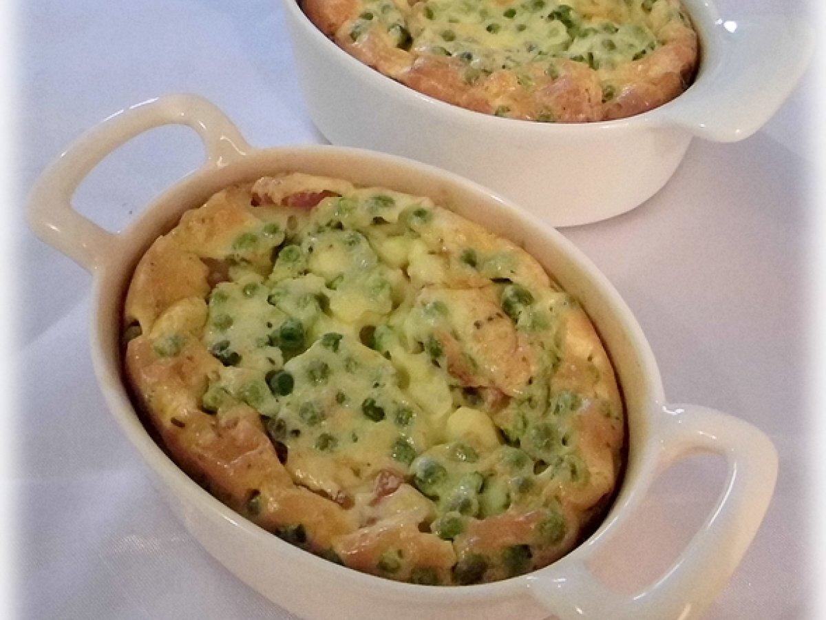 Clafoutis de petits pois, jambon et fromage ail & fines herbes PrécédentSuivant Platfacile40 min255 Kcal Envoyer cette recette à un ami Imprimer cette page Poser une question à l'auteur Publier votre photo de cette recette Une recette express de clafoutis salé. Ingrédients 4 100 g de petits pois ( frais ou surgelés ) 100 g d'allumettes de jambon blanc ( ou tranches de jambon coupées en lamelles ) 60 g de fromage ail et fines herbes 20 g de maïzena 10 g de farine 8 cl de crème fraîche liquide 10 cl de lait entier 1 jaune d'oeuf 2 oeufs Sel Poivre Coût estimé: 3.39Euros€ (0.85€/part)