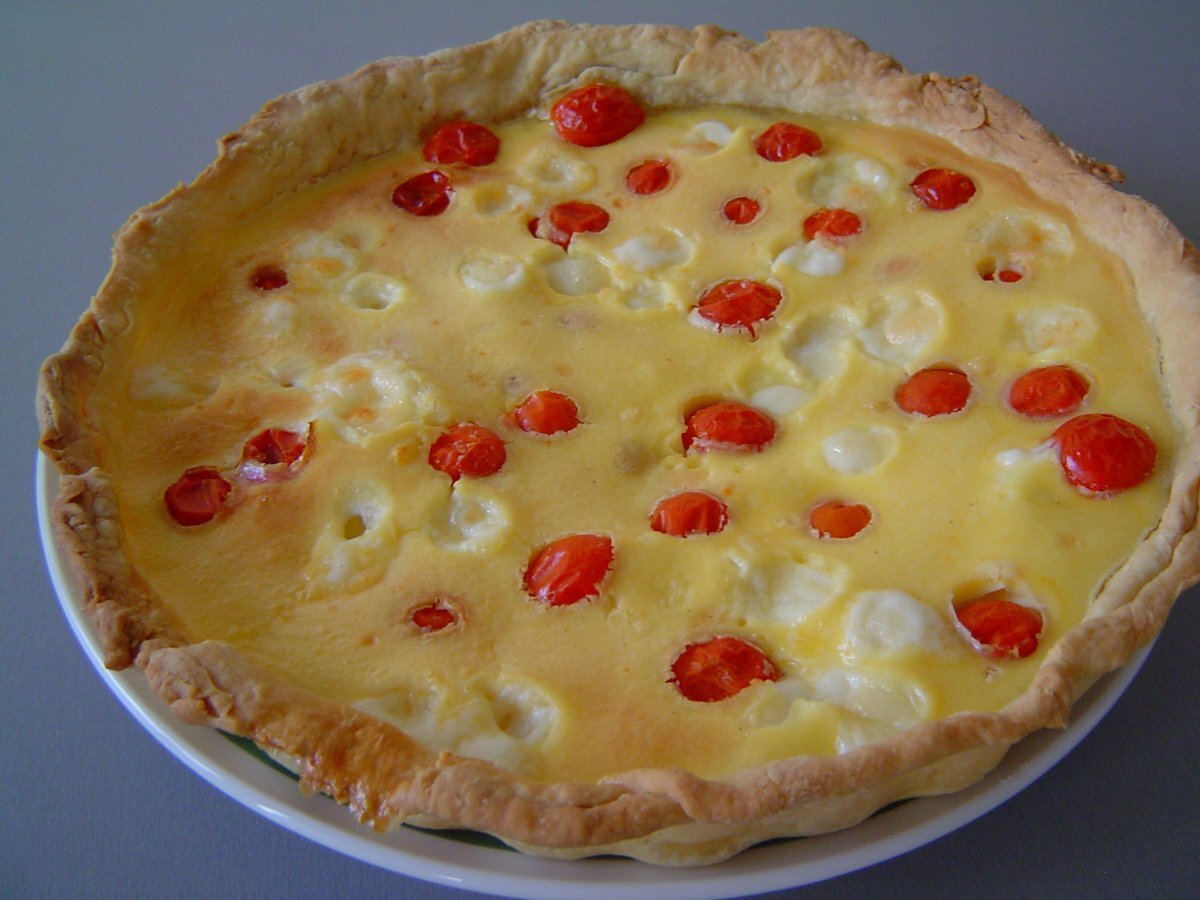 Clafoutis de tomates cerises et mini mozzarella. A servir accompagné d'une salade verte.