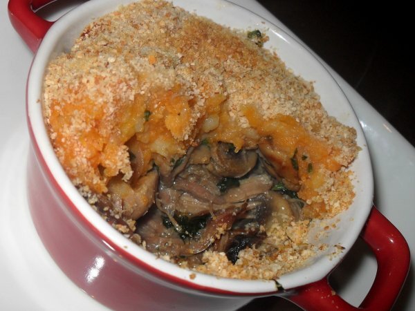 Cocotte de gratin de courge au canard confit Platmoyen1 heure585 Kcal Envoyer cette recette à un ami Imprimer cette page Poser une question à l'auteur Publier votre photo de cette recette Ingrédients 4 4 cuisses de canard confites 500 g de courge ou courge butternut 200 g de pommes de terre 250 g de champignons de Paris nettoyés 2 cuil à soupe de persil haché Muscade râpée 50 g de chapelure 50 + 20 g de beurre 5 cl de lait chaud