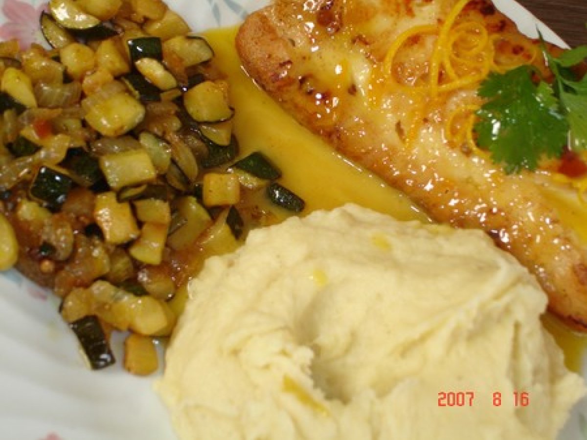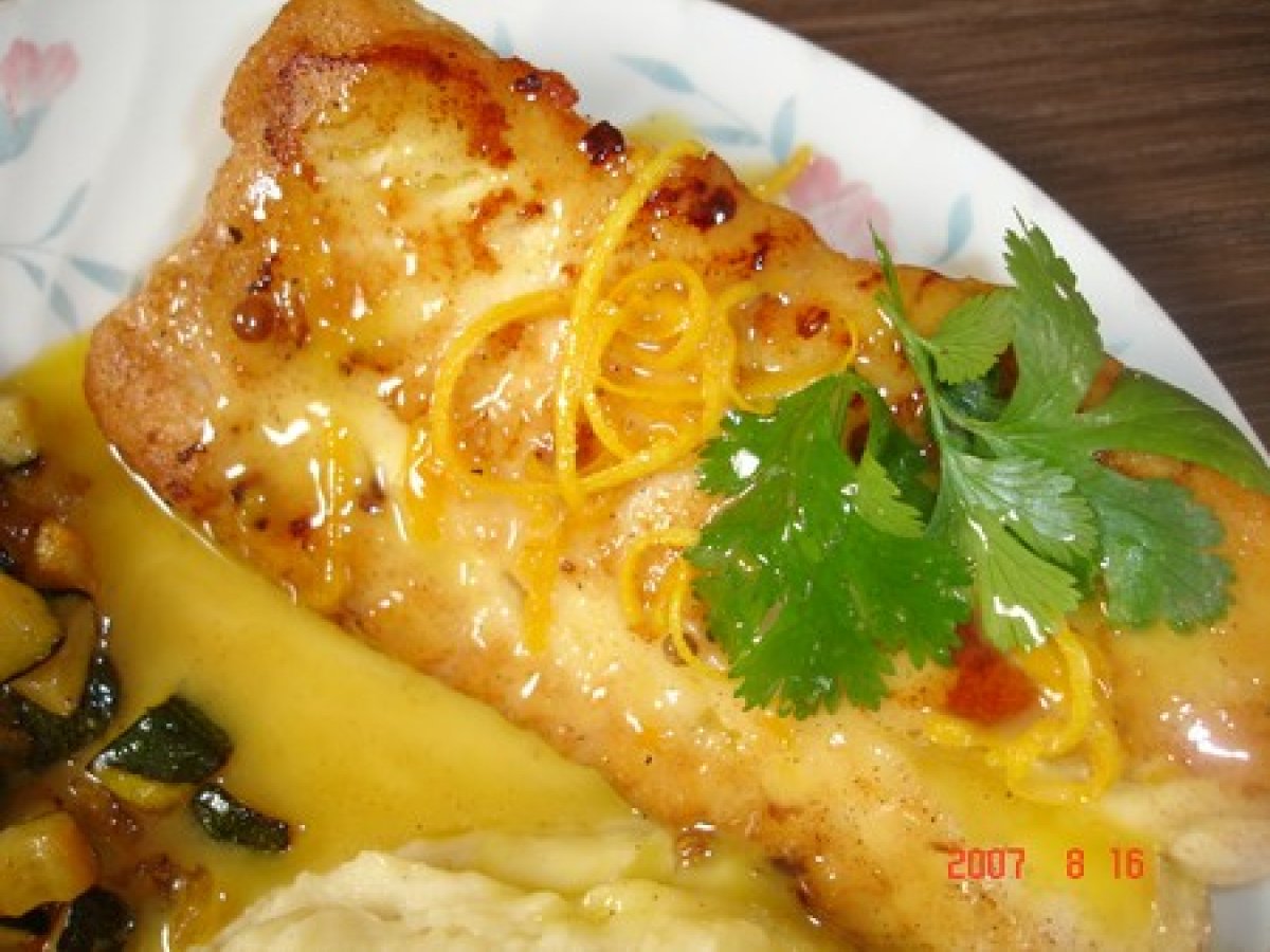 Coeur de cabillaud au beurre d'orange et courgettes