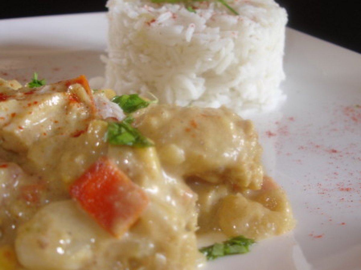 Colombo de cabillaud Platfacile55 min566 Kcal Envoyer cette recette à un ami Imprimer cette page Poser une question à l'auteur Publier votre photo de cette recette Ingrédients 4 800 g de filet de cabillaud 600 g de pommes de terre 2 tomates 2 gousses d'ail 1 oignon 1 petite boîte de maïs 25 cl de fumet de poisson instantané 20 cl de crème liquide 1 bouquet de coriandre 1 à 2 cuillères à soupe de poudre à colombo EDELICES (ou à défaut du curry) huile sel poivre